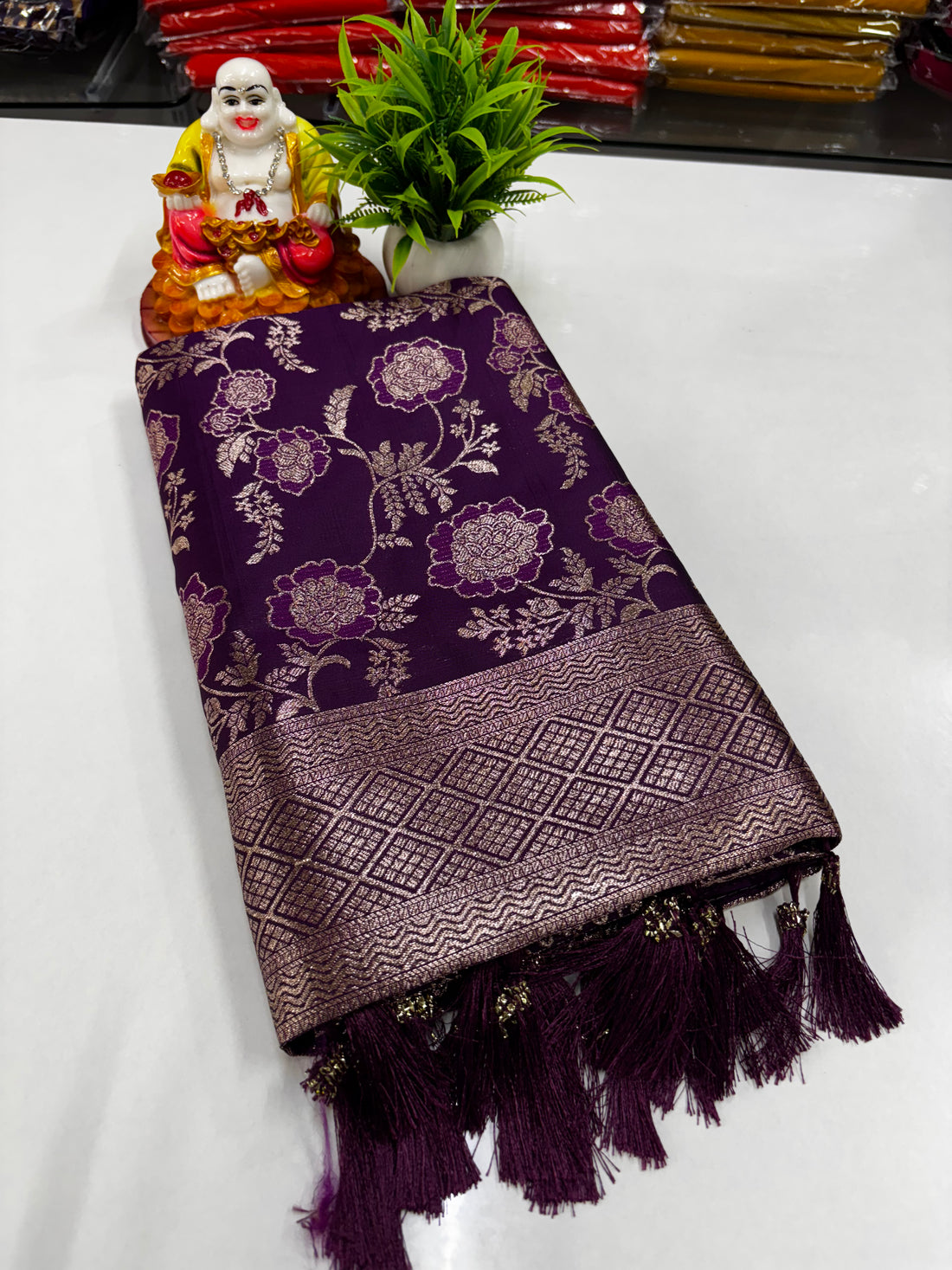 Semi Silk Saree with Elegant Meenakari & Floral Design Add a touch of timeless grace...