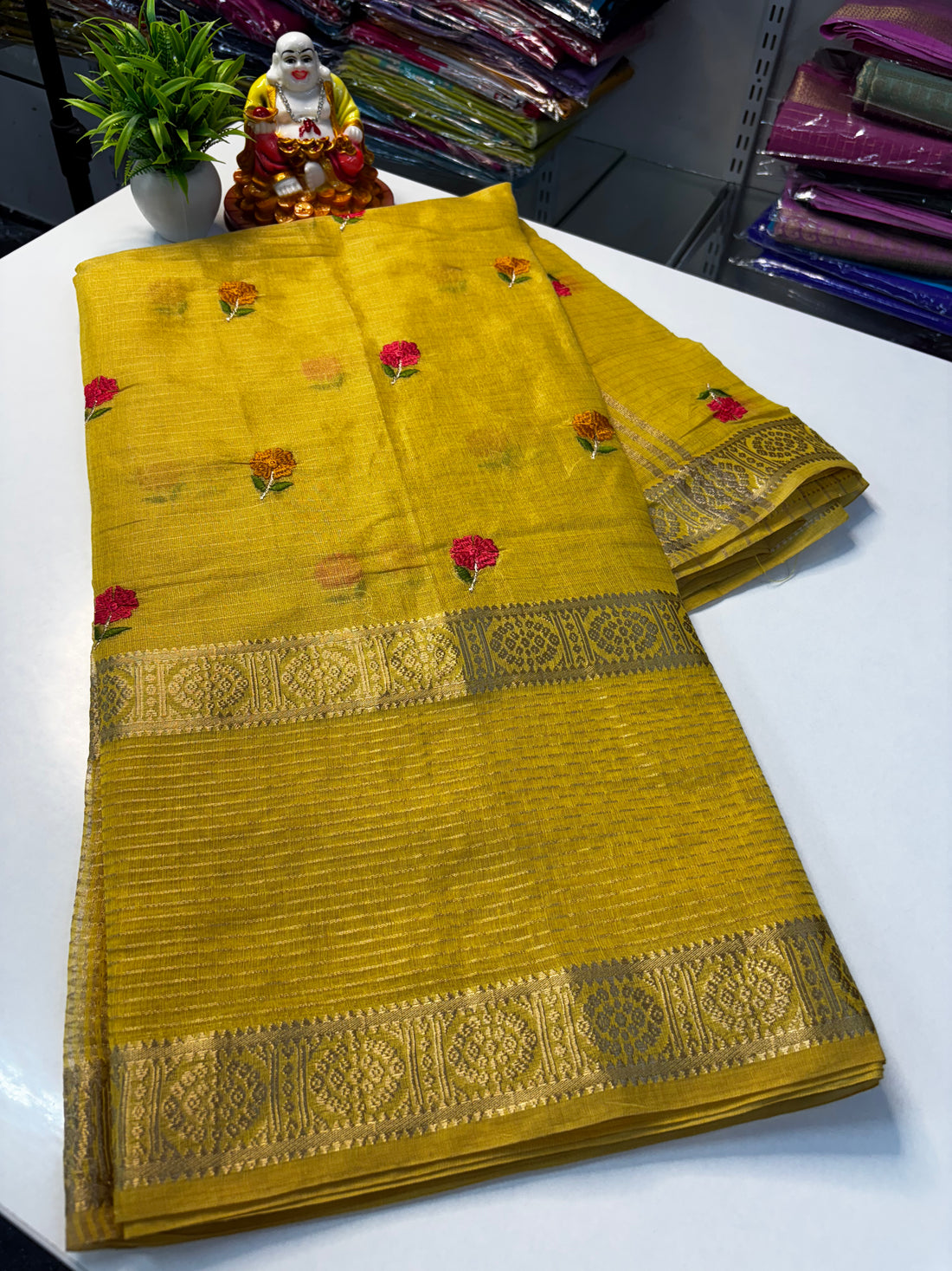 Designer Wear Fancy Linen Blended Saree with Floral DesignBy Padmavathi Silks and Sarees Elevate your...
