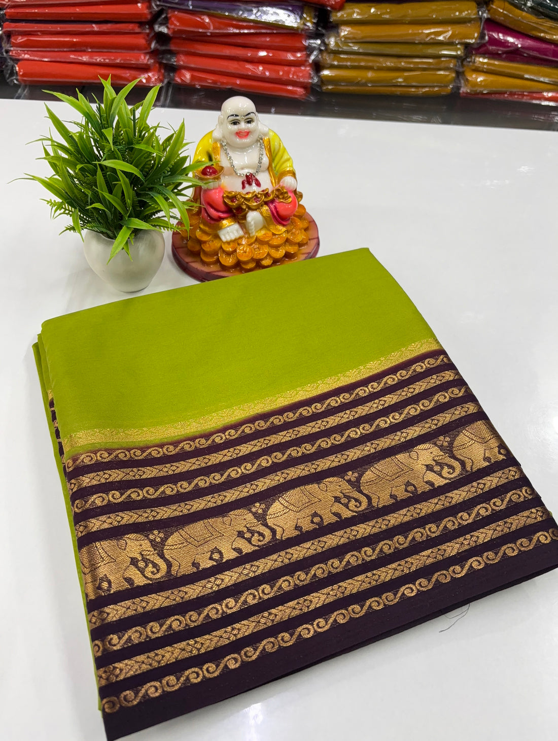 Mysore Crepe Silk Saree with Traditional Elephant Border ✨