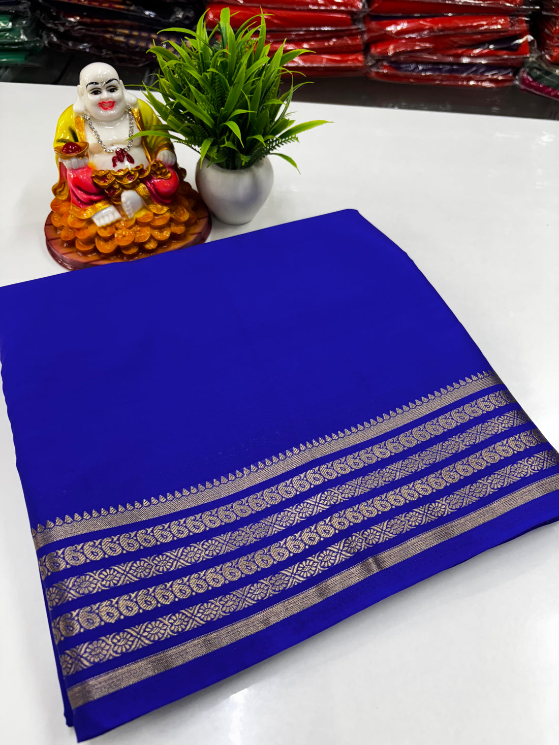 Crape Mysore Silk Saree with Beautiful Small Mango Border – Padmavathi Silks & Sarees
