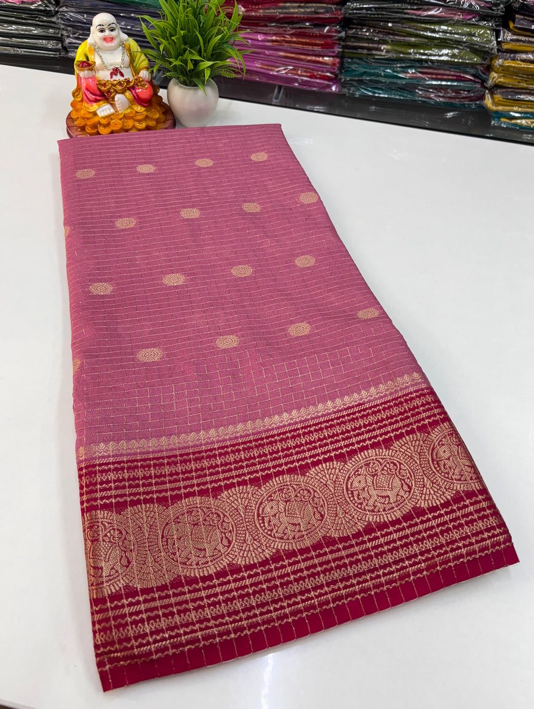 Beautiful Bindhi Border Chex Pattern Mysore Crepe Silk Saree