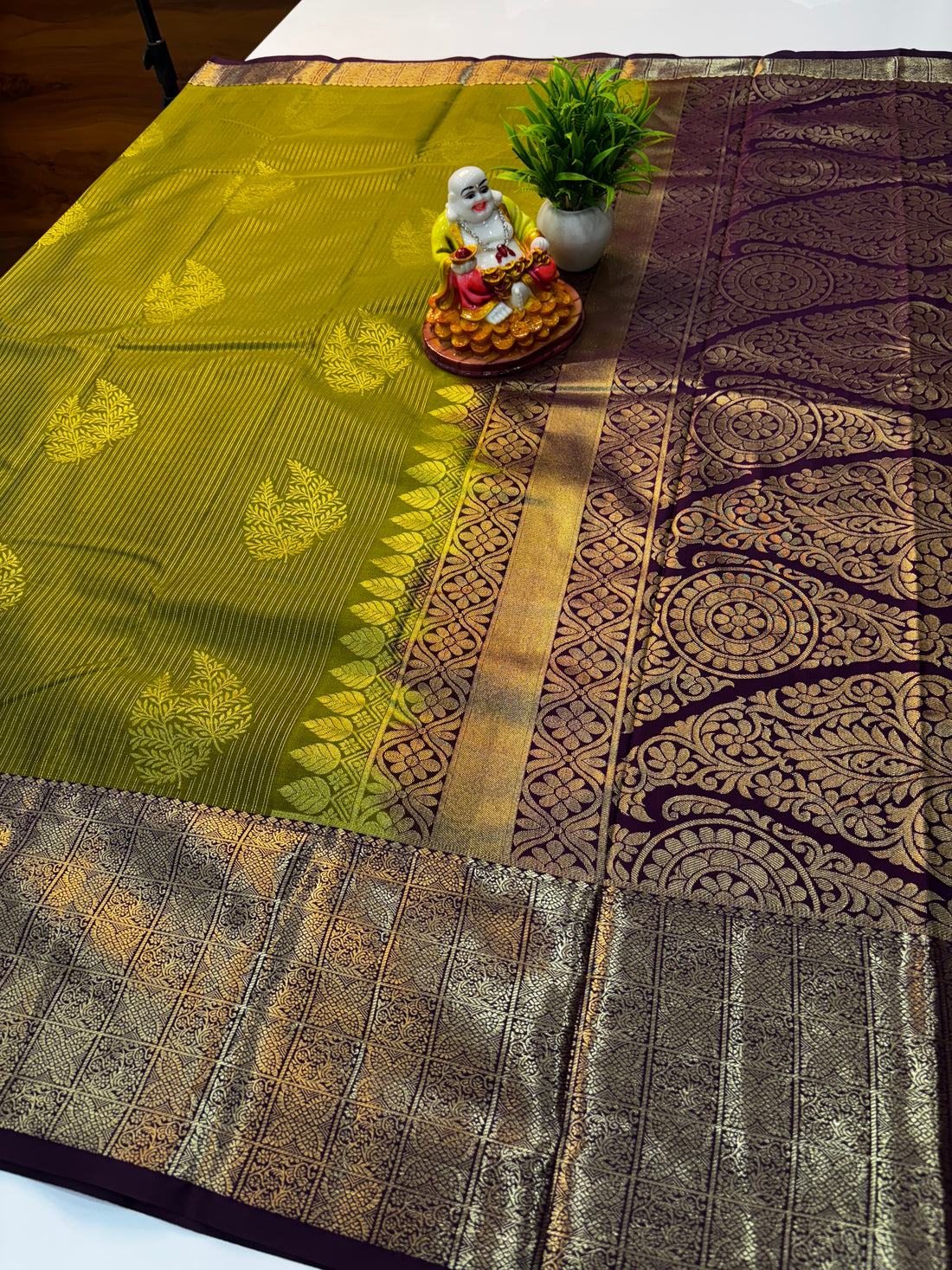 Premium Mysore Crepe Silk Saree with Chex Pattern & Buttas