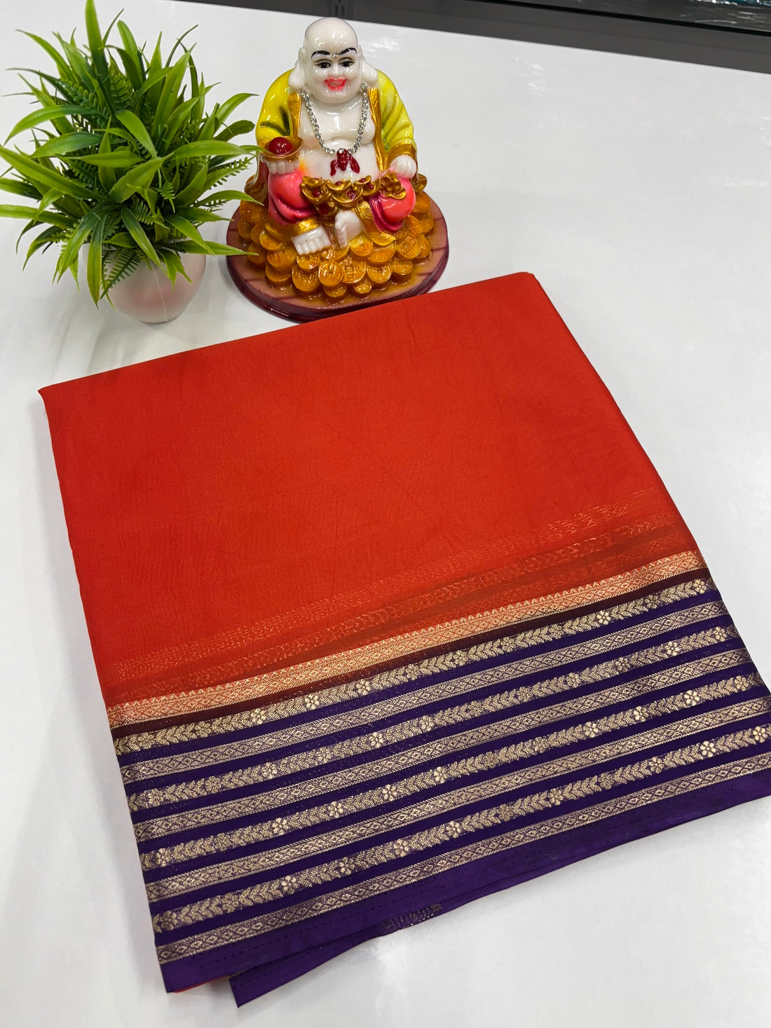 🌸 Mysore Crepe Silk Saree with Beautiful Contrast Border 🌸