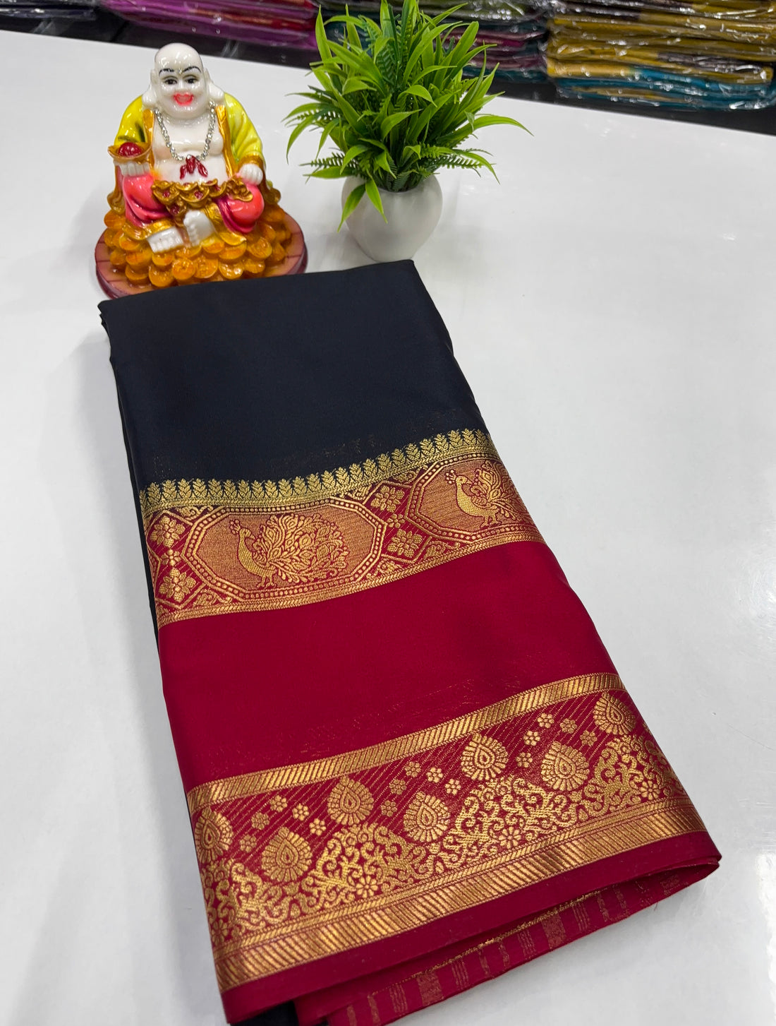 Mysore Crepe Silk Saree with Contrast Border & Rich Pallu