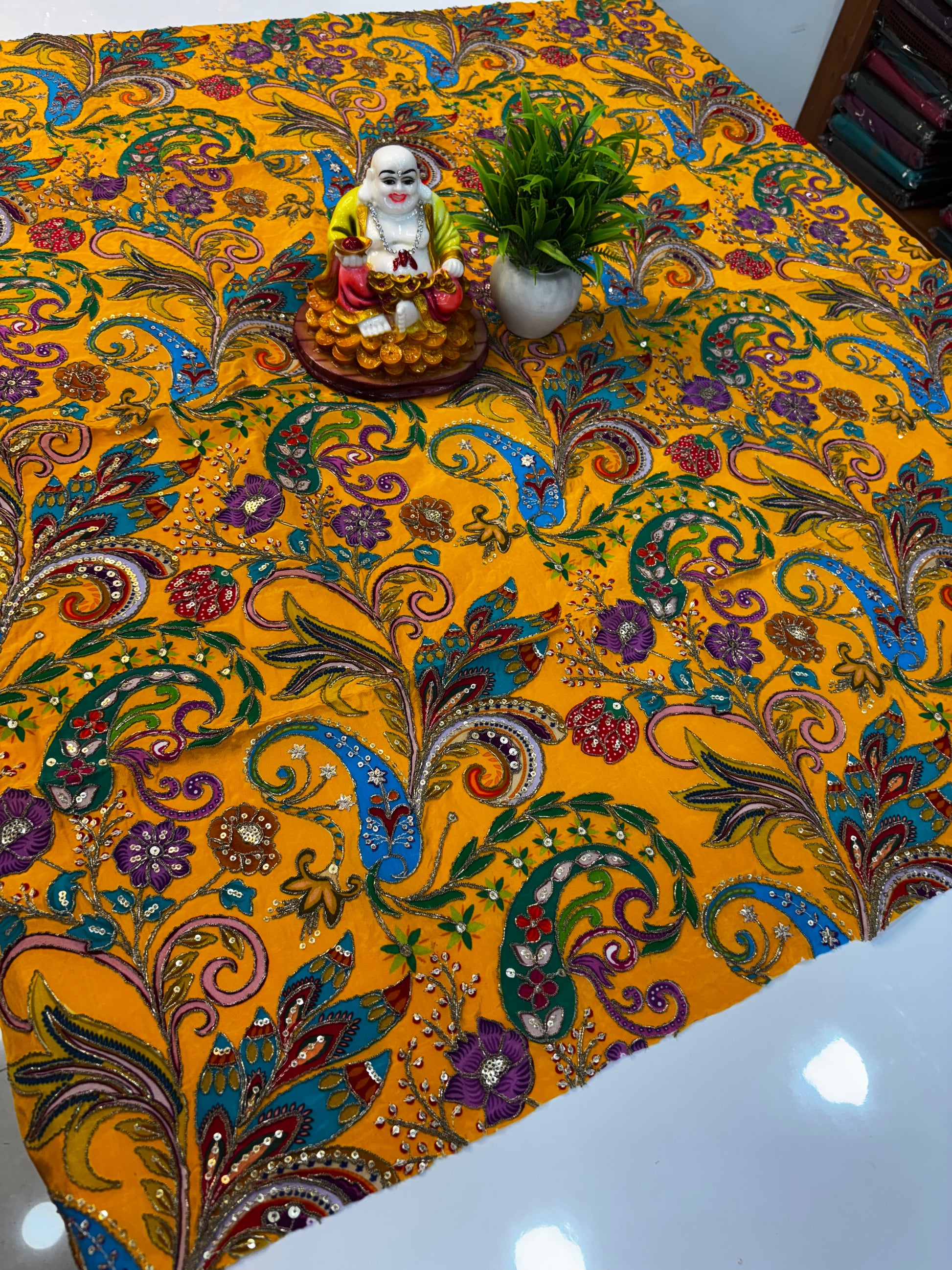 We recommend dry cleaning for Mysore Silk, Dola Silk, and delicate fabrics to maintain their shine and longevity. Avoid direct sunlight while drying and store in a cool, dry place.