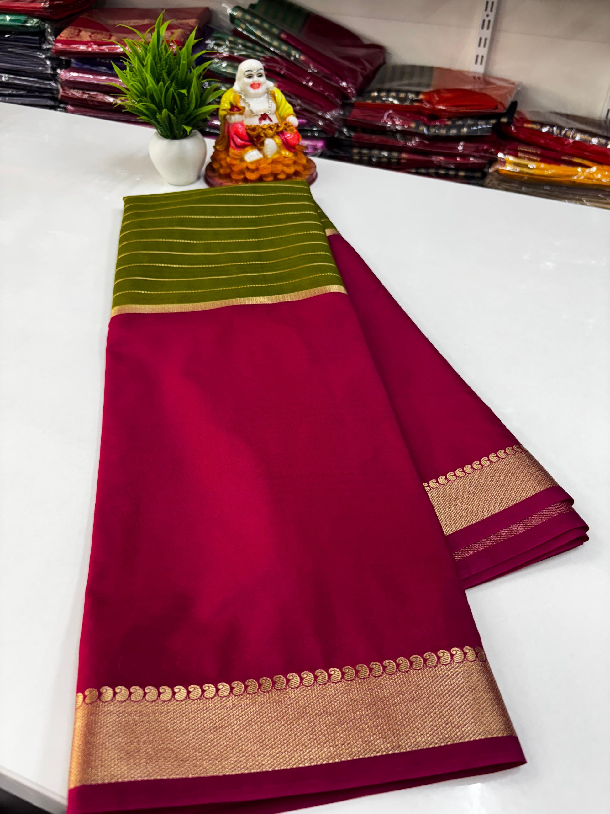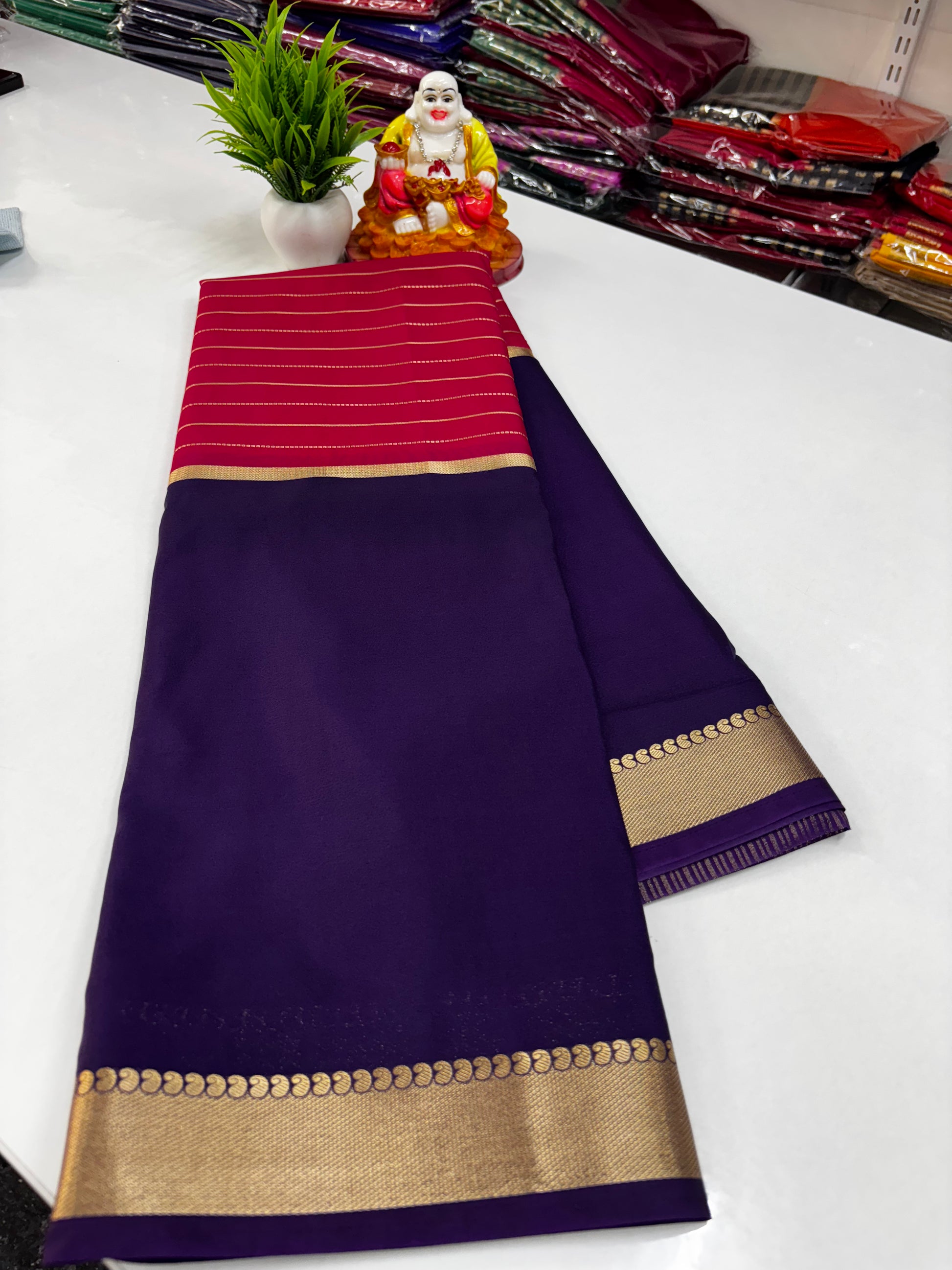 We specialize in Mysore Silk Semi Crepe Sarees along with Georgette, Dola Silk, and designer blouse collections in Raw Silk, Velvet, and Satin.