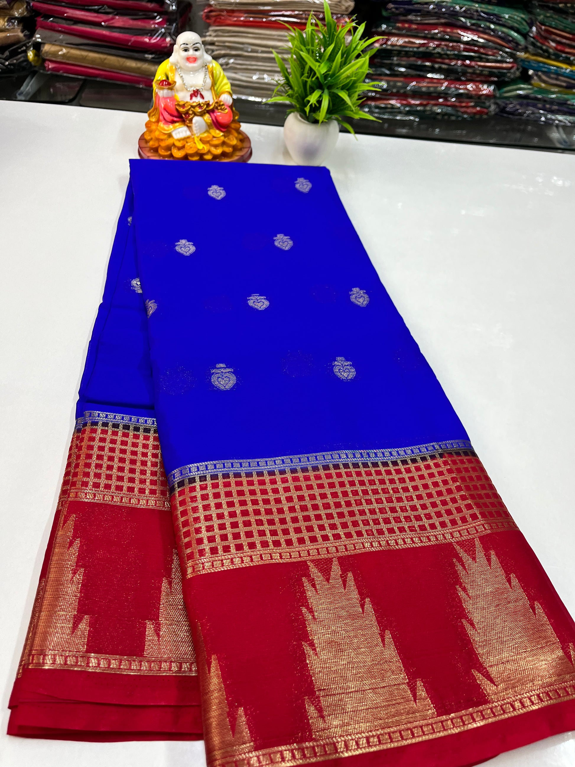 We specialize in Mysore Silk Semi Crepe Sarees along with Georgette, Dola Silk, and designer blouse collections in Raw Silk, Velvet, and Satin.