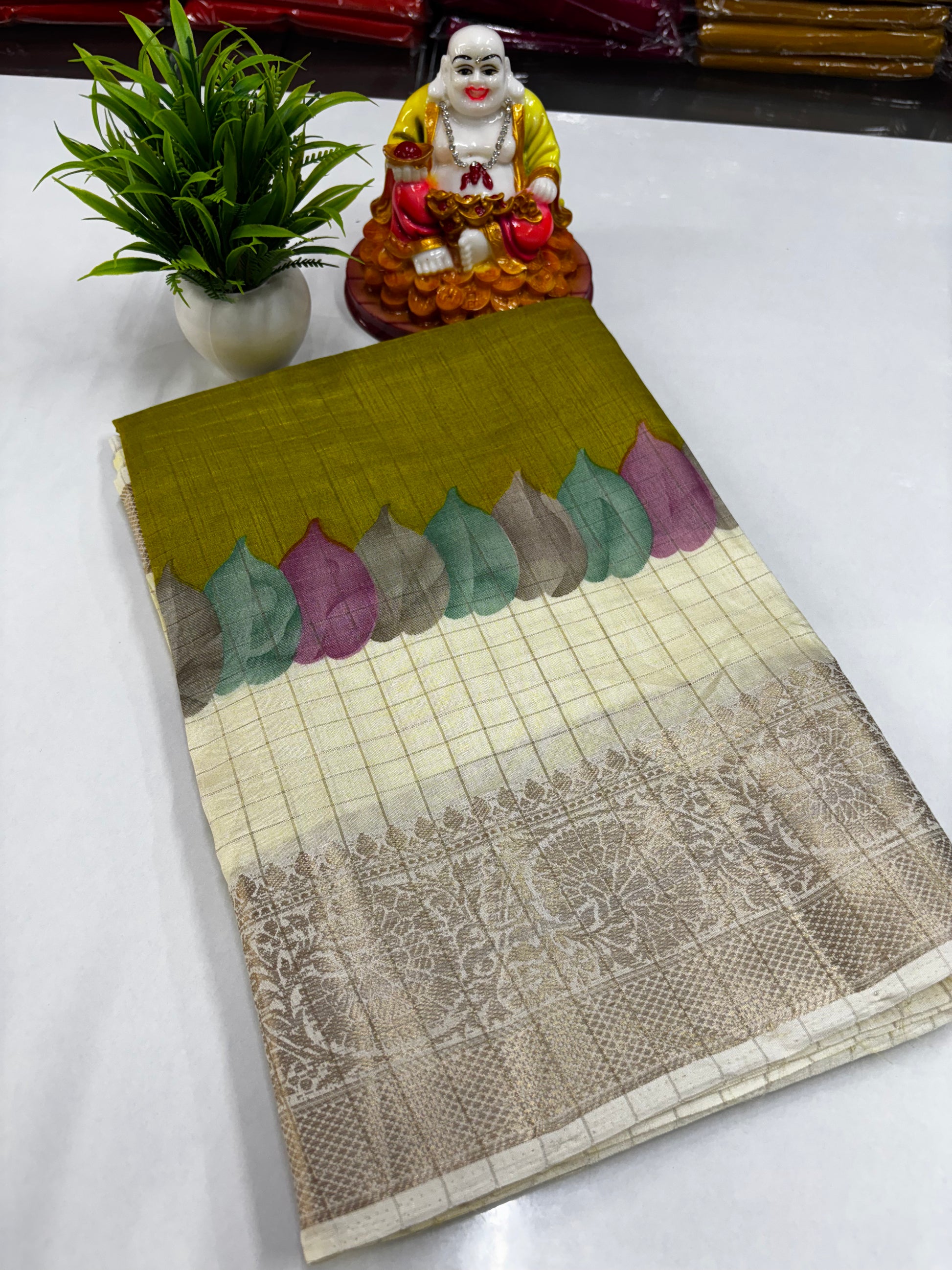 Experience timeless elegance with this beautiful Dola Silk saree, crafted to perfection by Padmavathi Silks and Sarees. Designed for women who love graceful drape and subtle shine, this saree blends traditional artistry with modern sophistication.