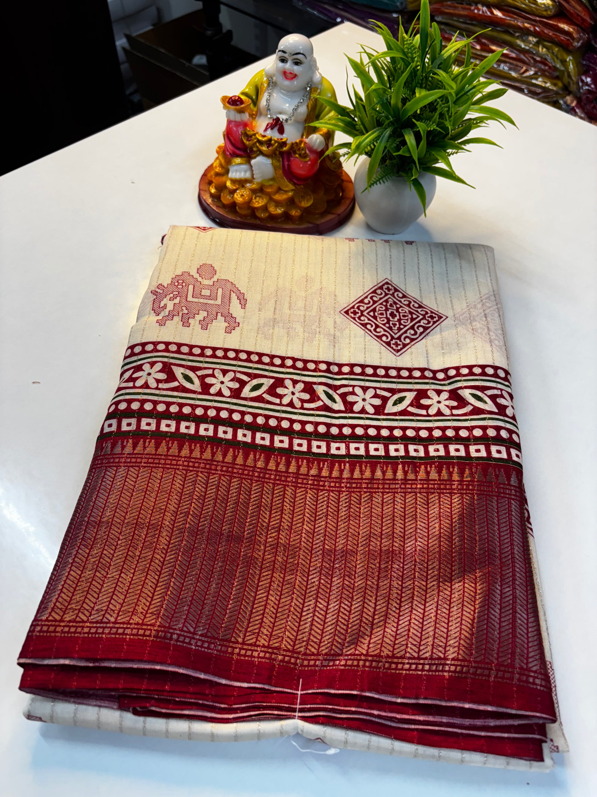 Designed with intricate weaving and fine detailing, this saree is perfect for festive occasions, weddings, and special celebrations. The soft fabric ensures comfort while maintaining a classy and sophisticated appearance.