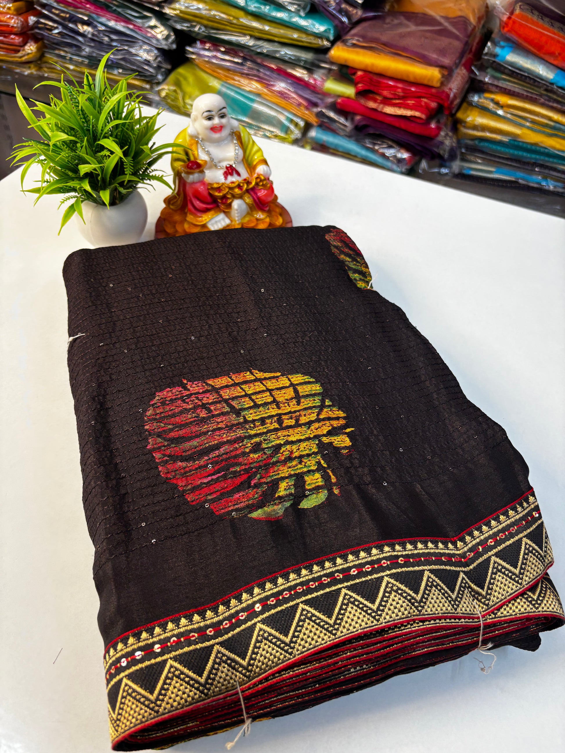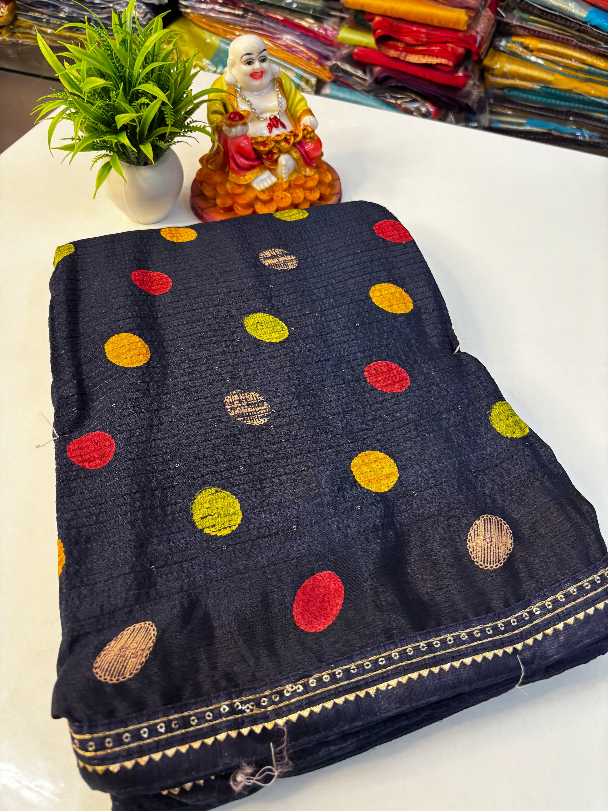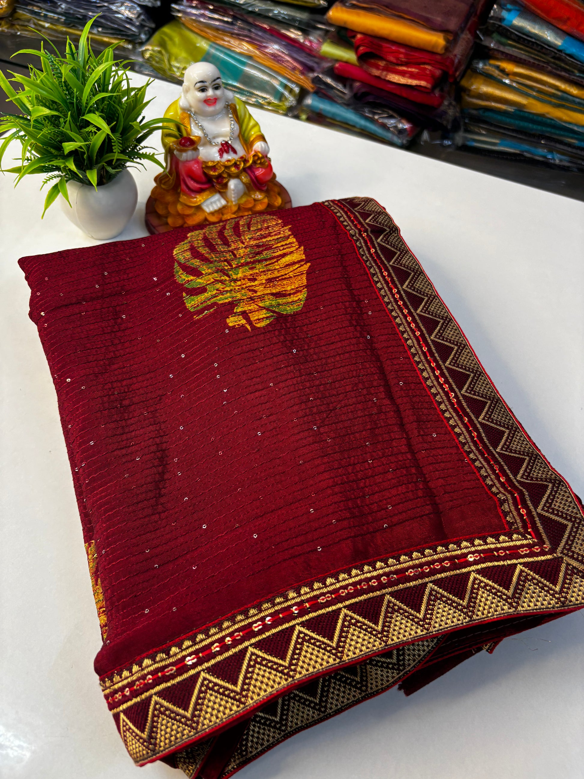 Elevate your ethnic wardrobe with this beautiful fancy saree featuring an elegant leaf and bubble design that blends contemporary charm with traditional grace. Crafted with precision and designed to make you stand out, this saree is perfect for festive occasions, parties, and special gatherings.