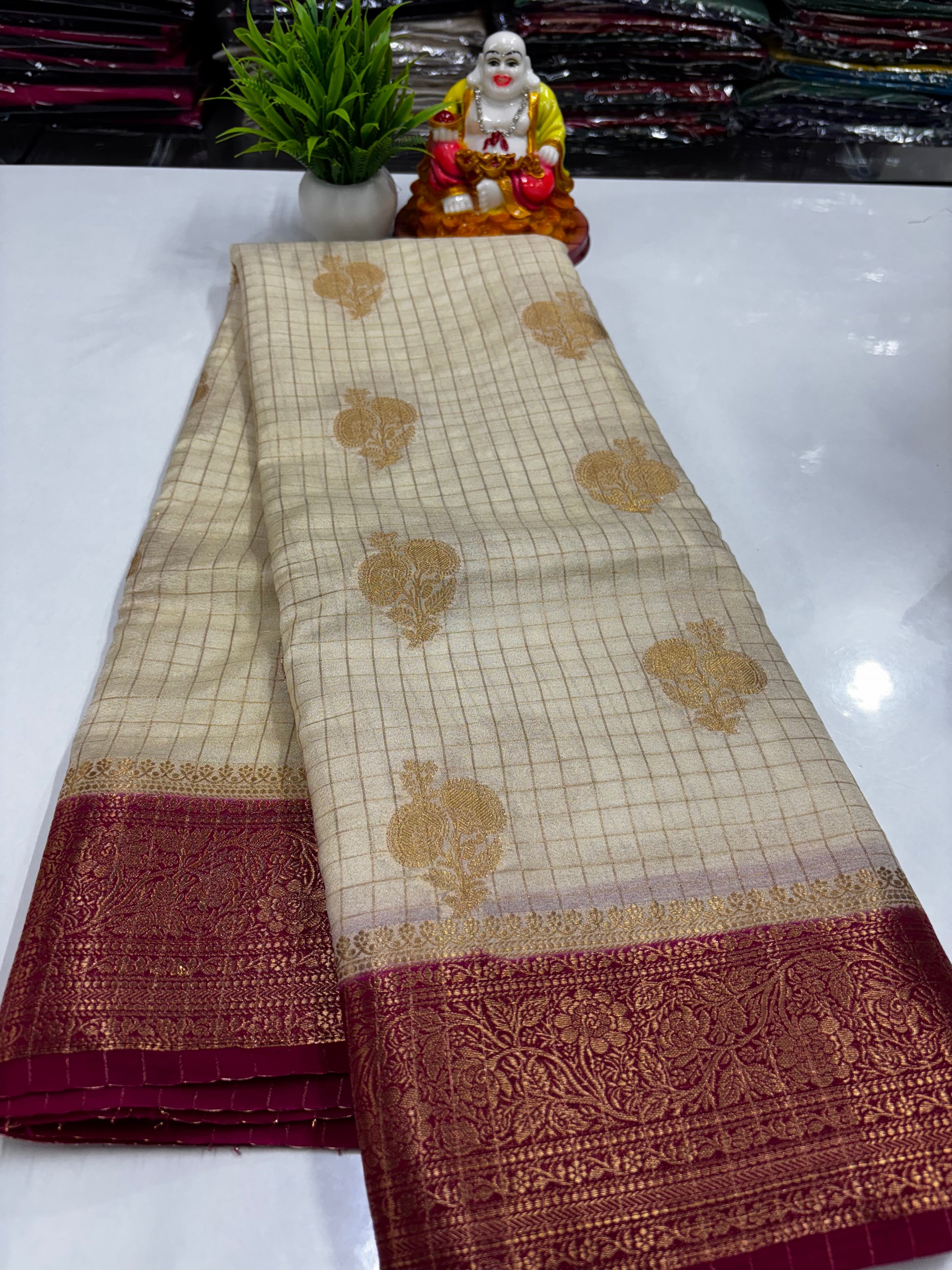 Beautiful Georgette Saree with Chex Pattern, Rich Pallu & Brocade Blouse