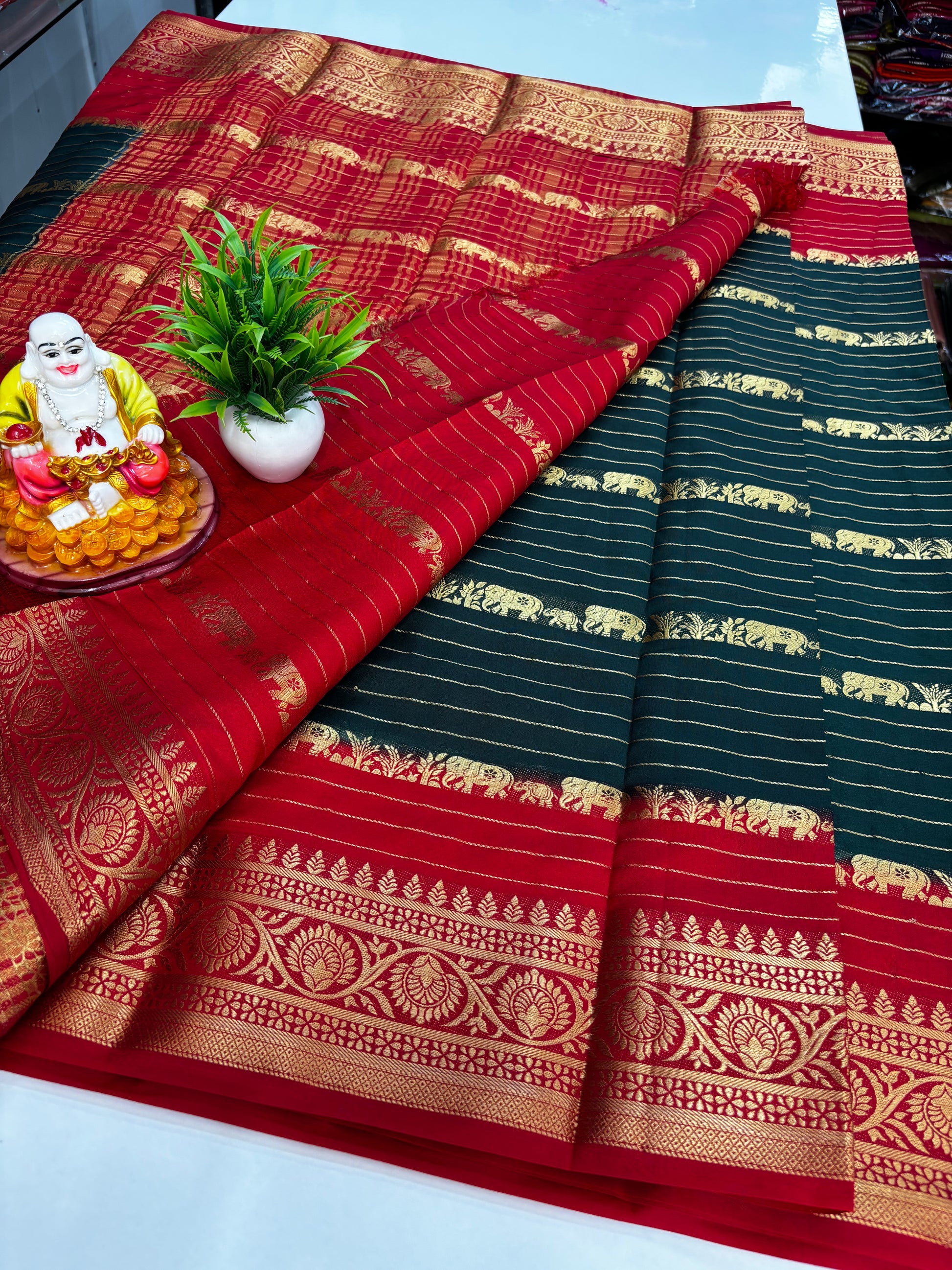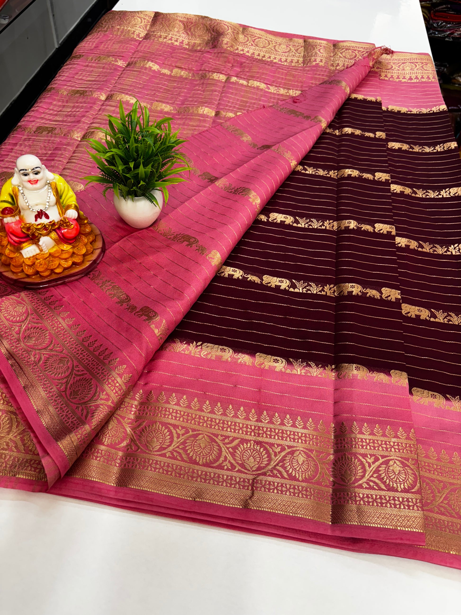 Beautiful Mysore Crepe Silk Saree with Elephant Stripes