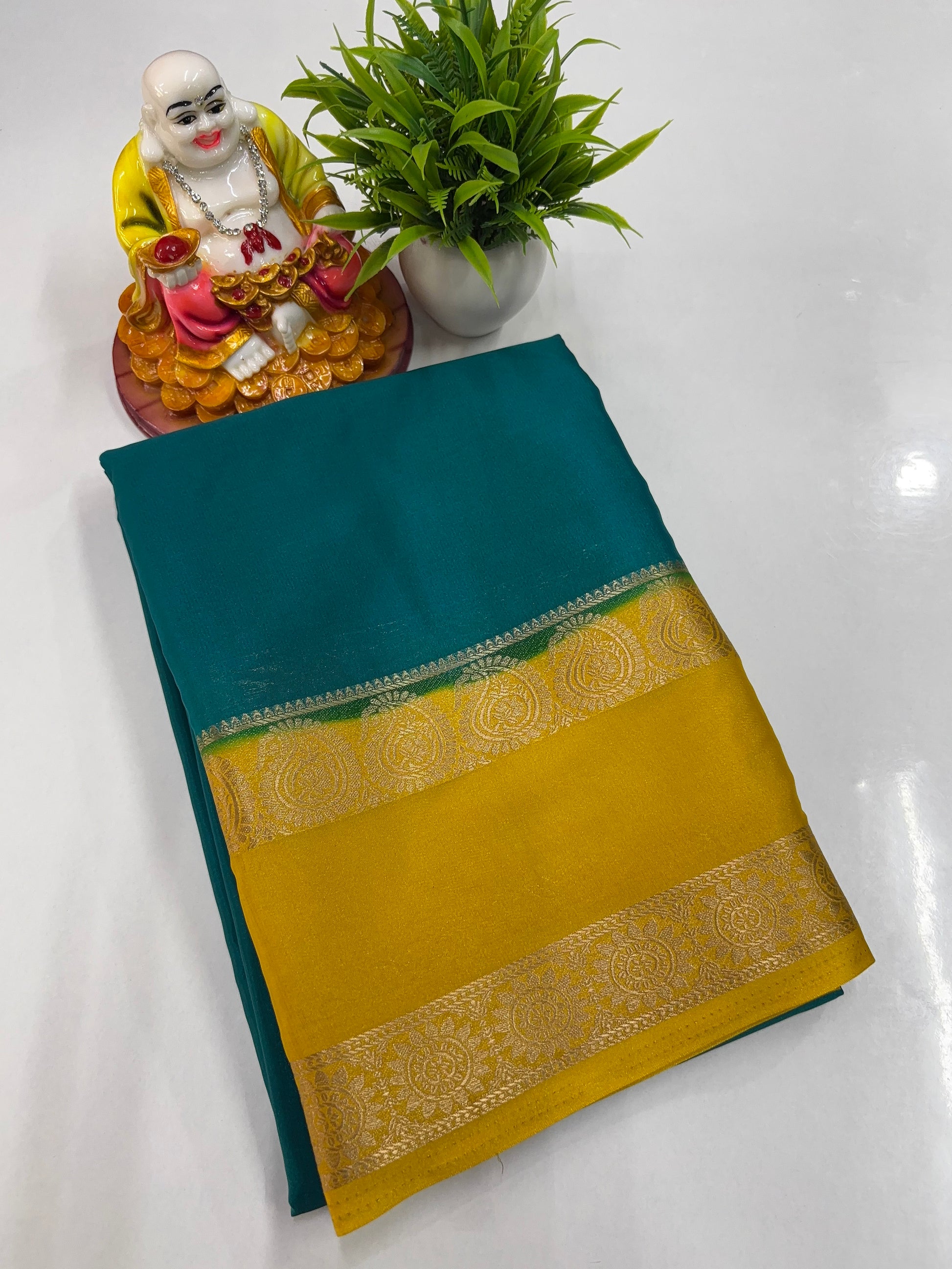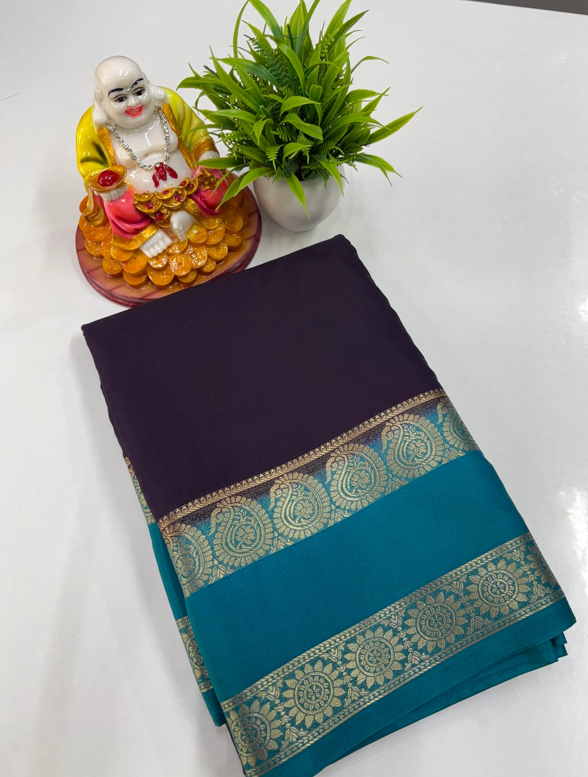 Beautiful Mysore Crepe Silk Saree with Mango Bentex Border ✨