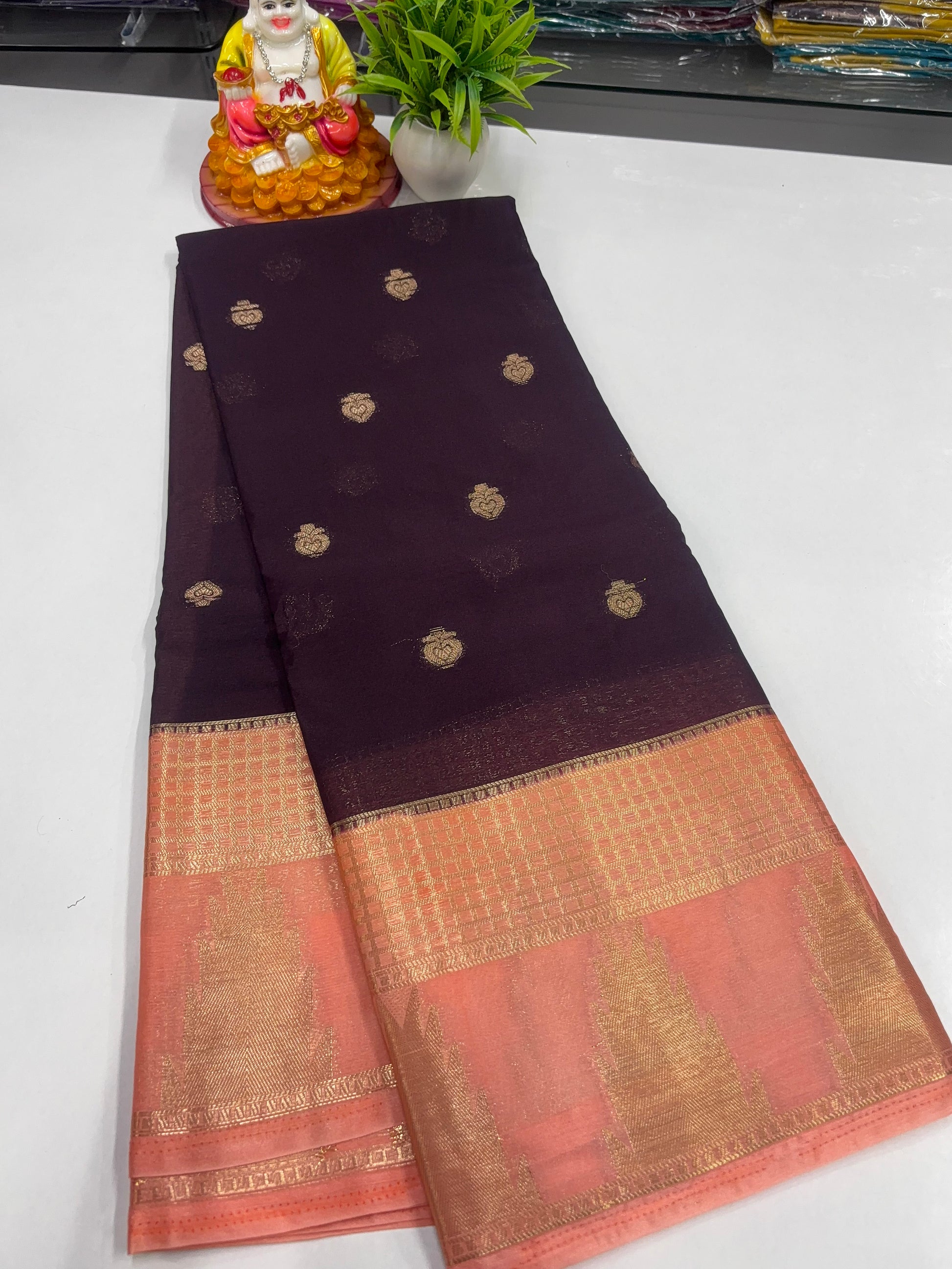 Chiffon Saree with Elegant Temple Design & Buttas | Padmavathi Silks and Sarees