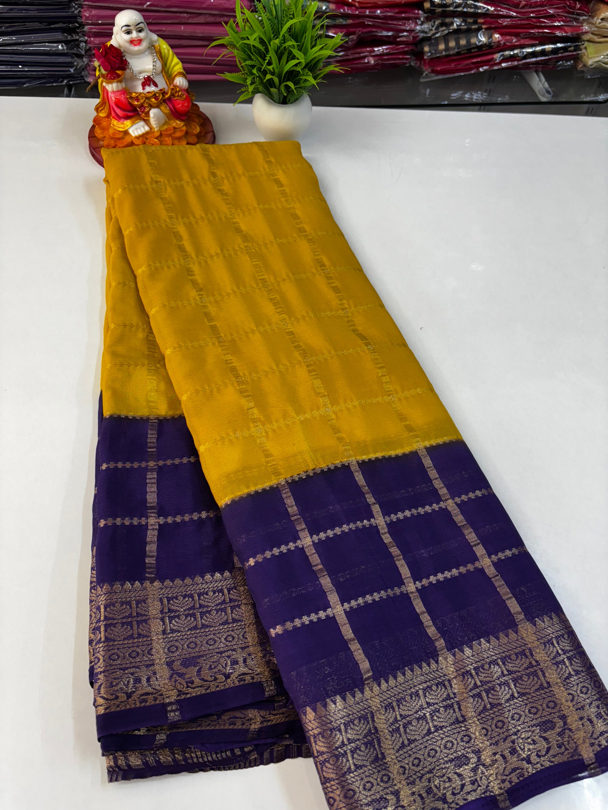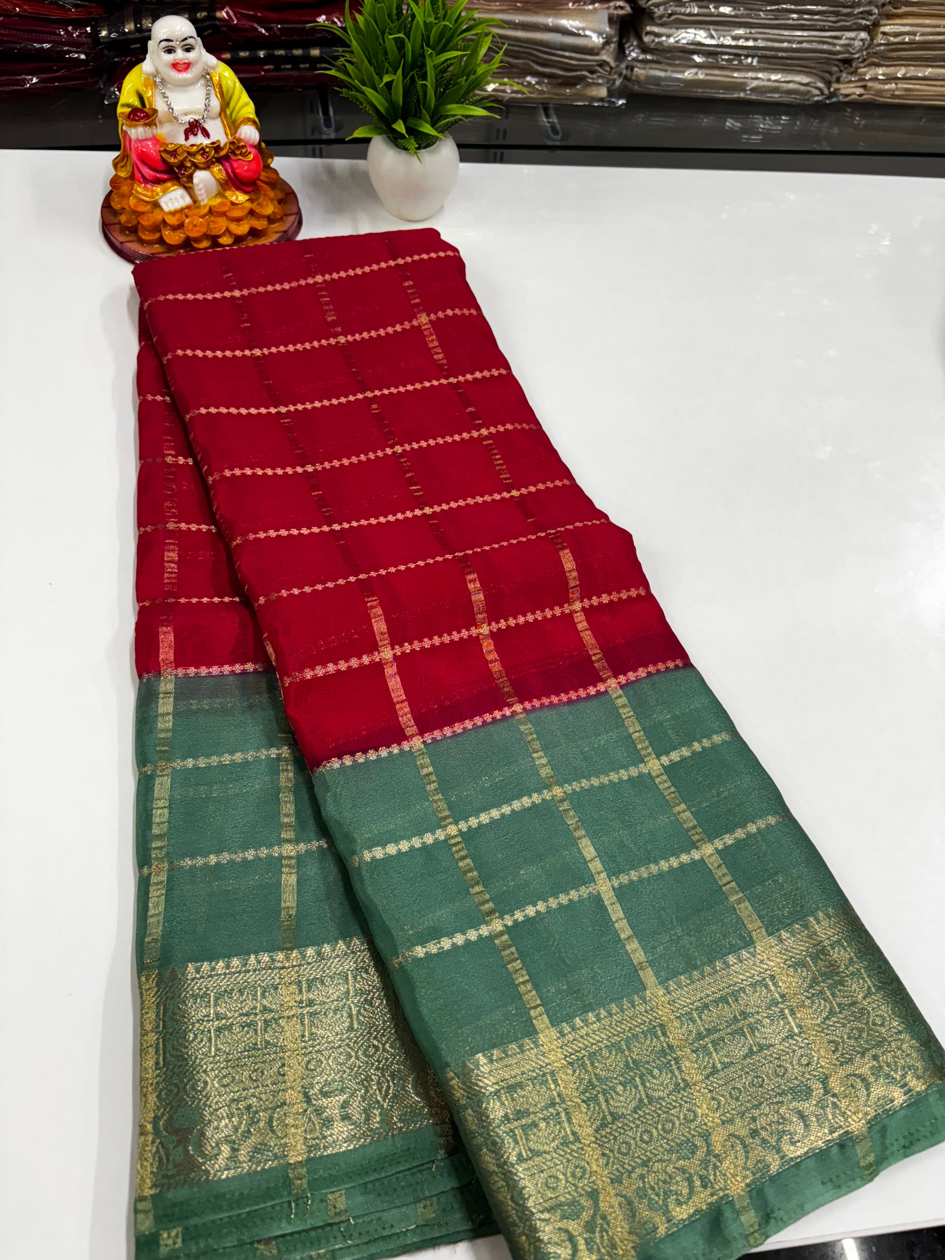 Crepe Chiffon Saree with Checks and Contrast Colors – Padmavathi Silks and Sarees