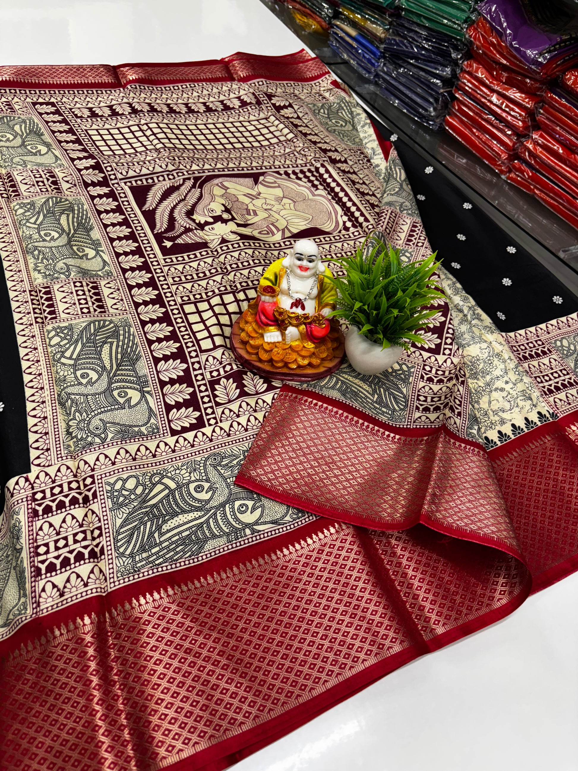 Dola Silk Saree with Kalamkari & Madhubani Elegance ✨