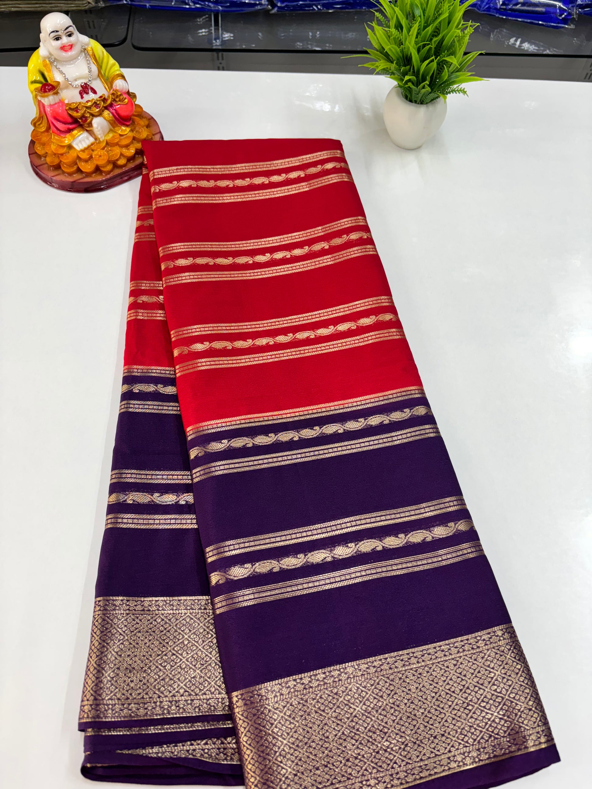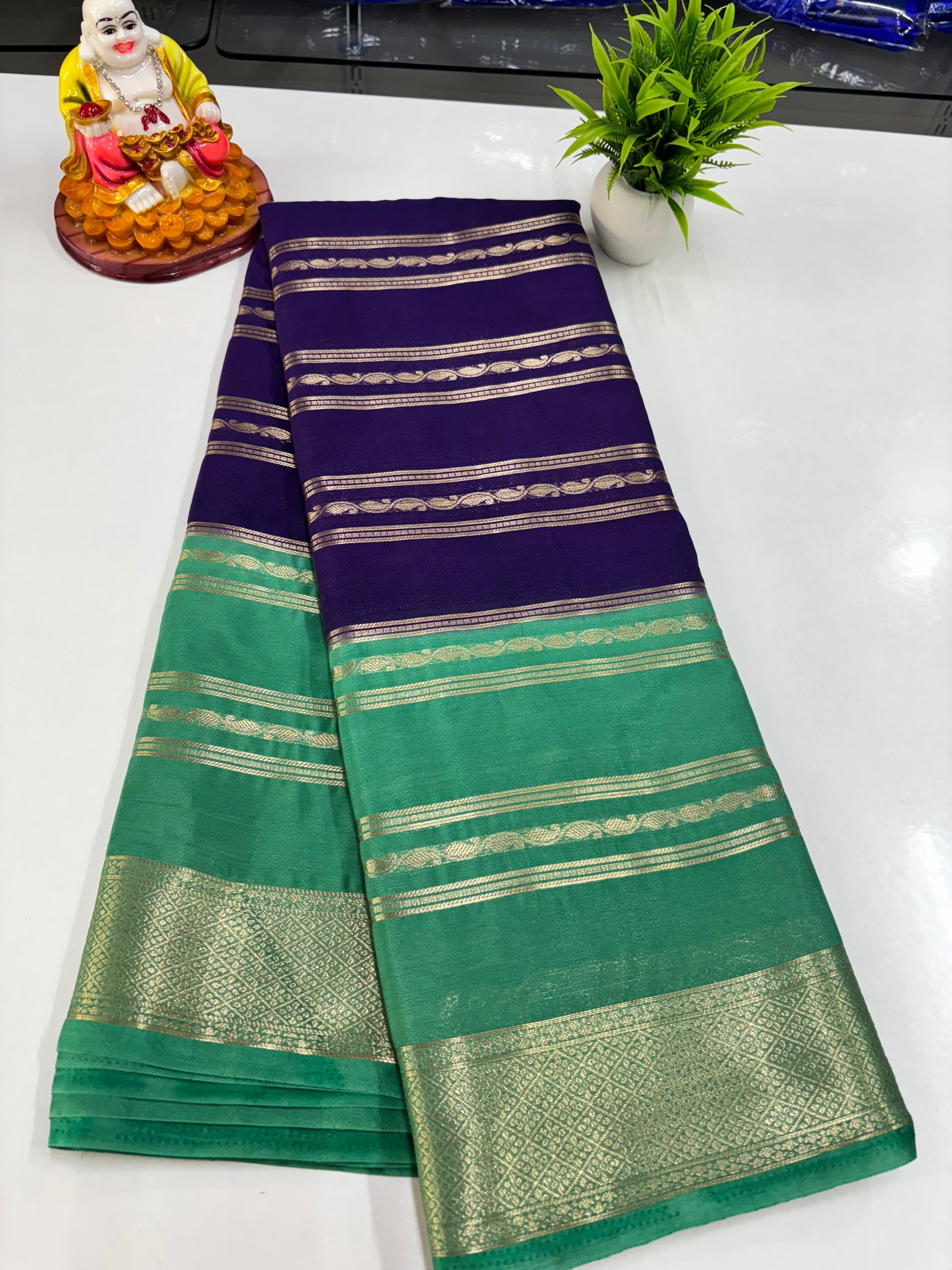 Title: Elegant 2D Semi Crepe Saree with Small Mango Stripes – Padmavathi Silks and Sarees