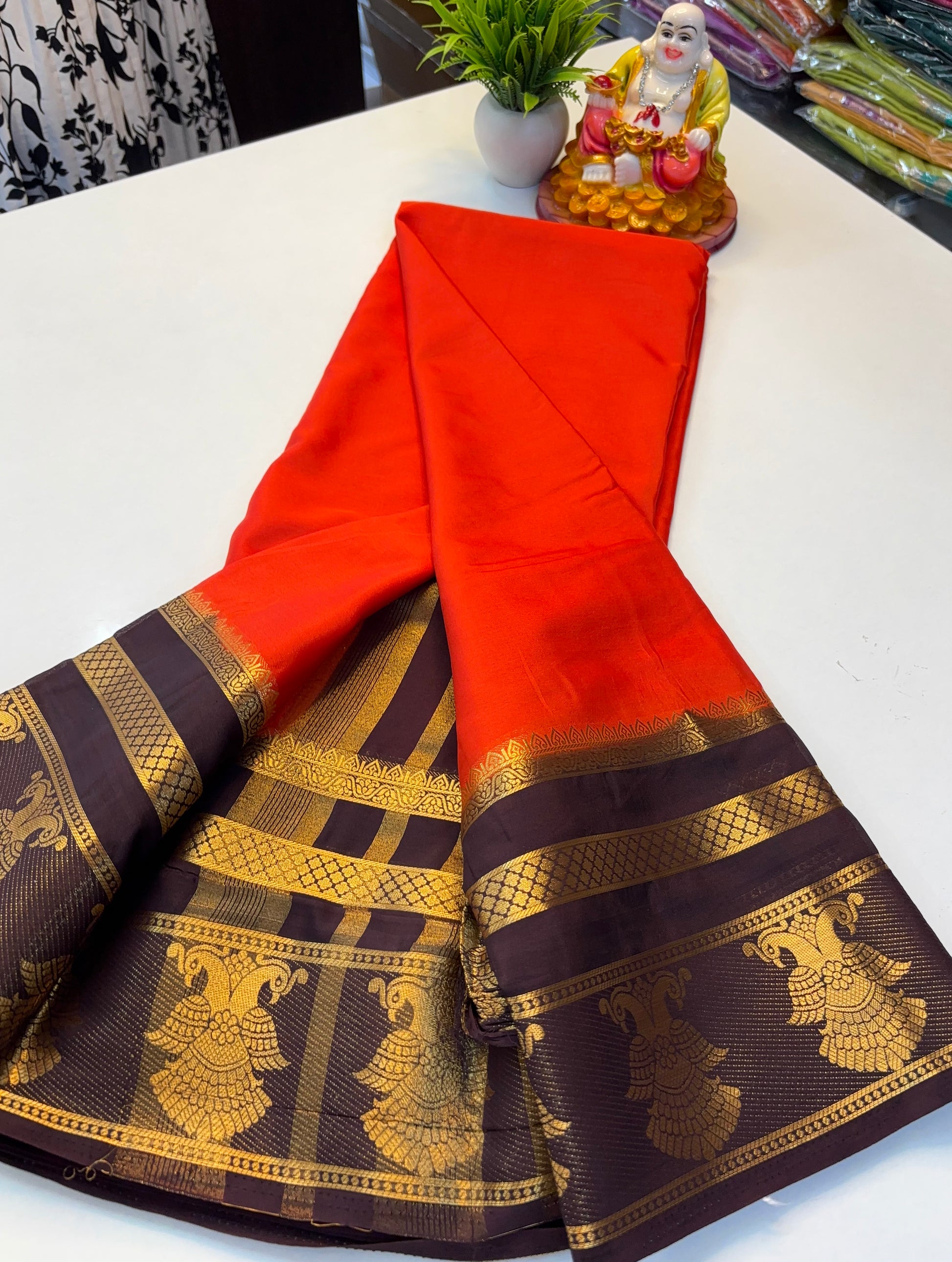 Elegant Mysore Crepe Silk Saree with Traditional Garuda Border | Padmavathi Silks and Sarees