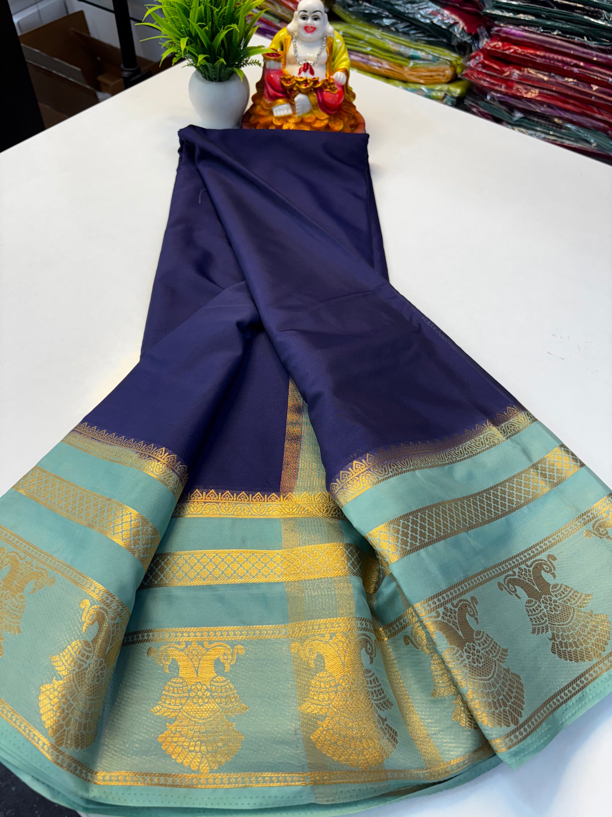 Experience timeless elegance with this beautifully crafted Mysore crepe silk saree from Padmavathi Silks and Sarees. Designed to reflect tradition and grace, this saree features a stunning Garuda motif border, symbolizing strength and divinity, making it a perfect choice for festive and traditional occasions.