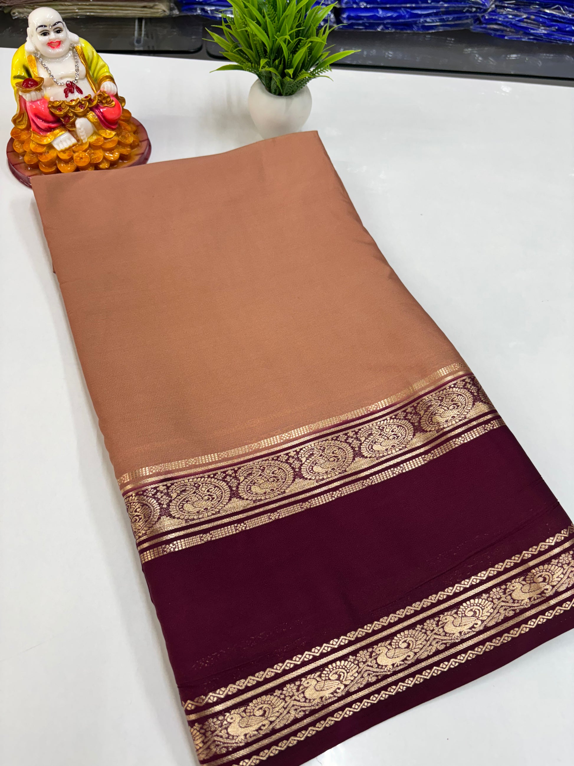 Elegant Semi Crepe Saree with Peacock Design and Contrast Color