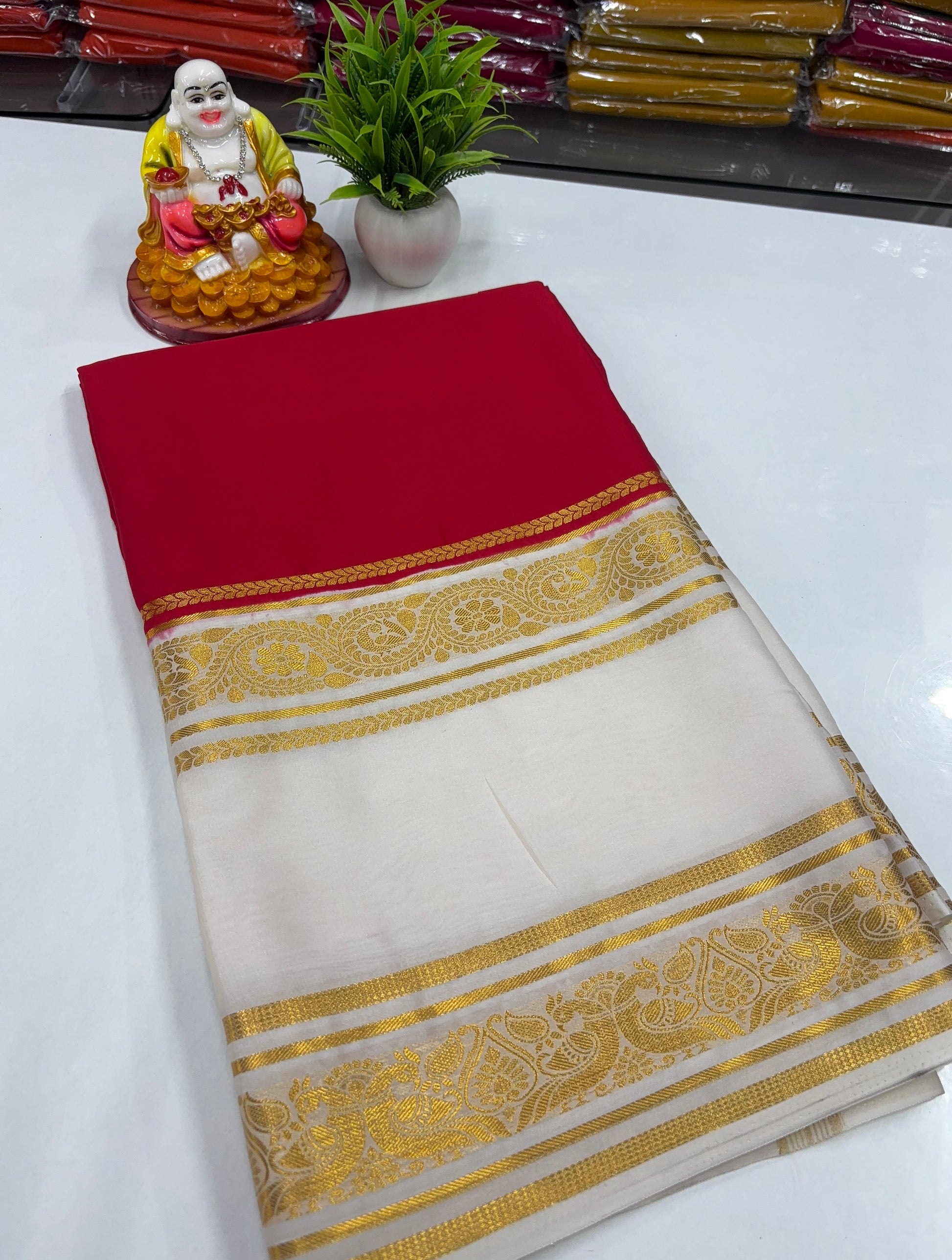 Experience timeless grace with this premium Mysore crepe silk saree, designed to offer a perfect blend of richness and simplicity. The saree features a beautiful peacock bentex border, adding a touch of cultural charm and artistic finesse.
