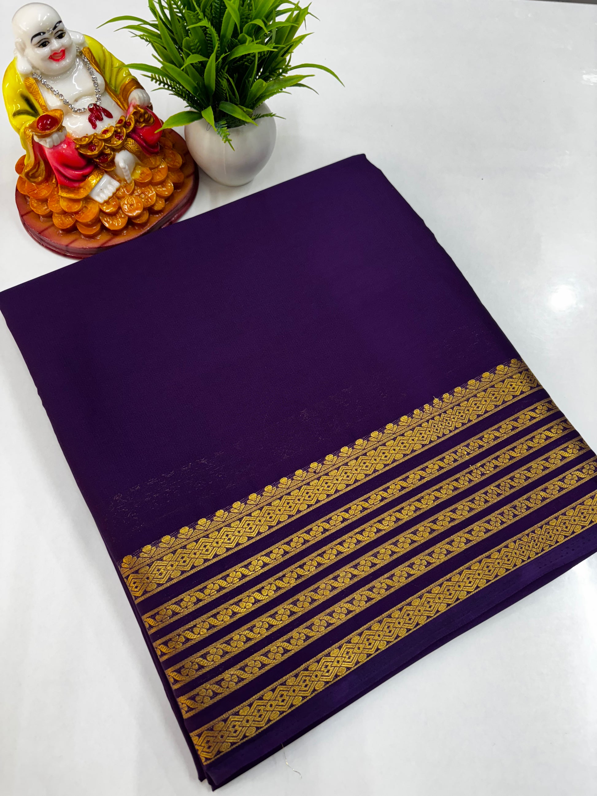 Mysore Crepe Silk Saree with Beautiful Border, Chit Pallu & Self-Colour Blouse – Padmavathi Silks and Sarees