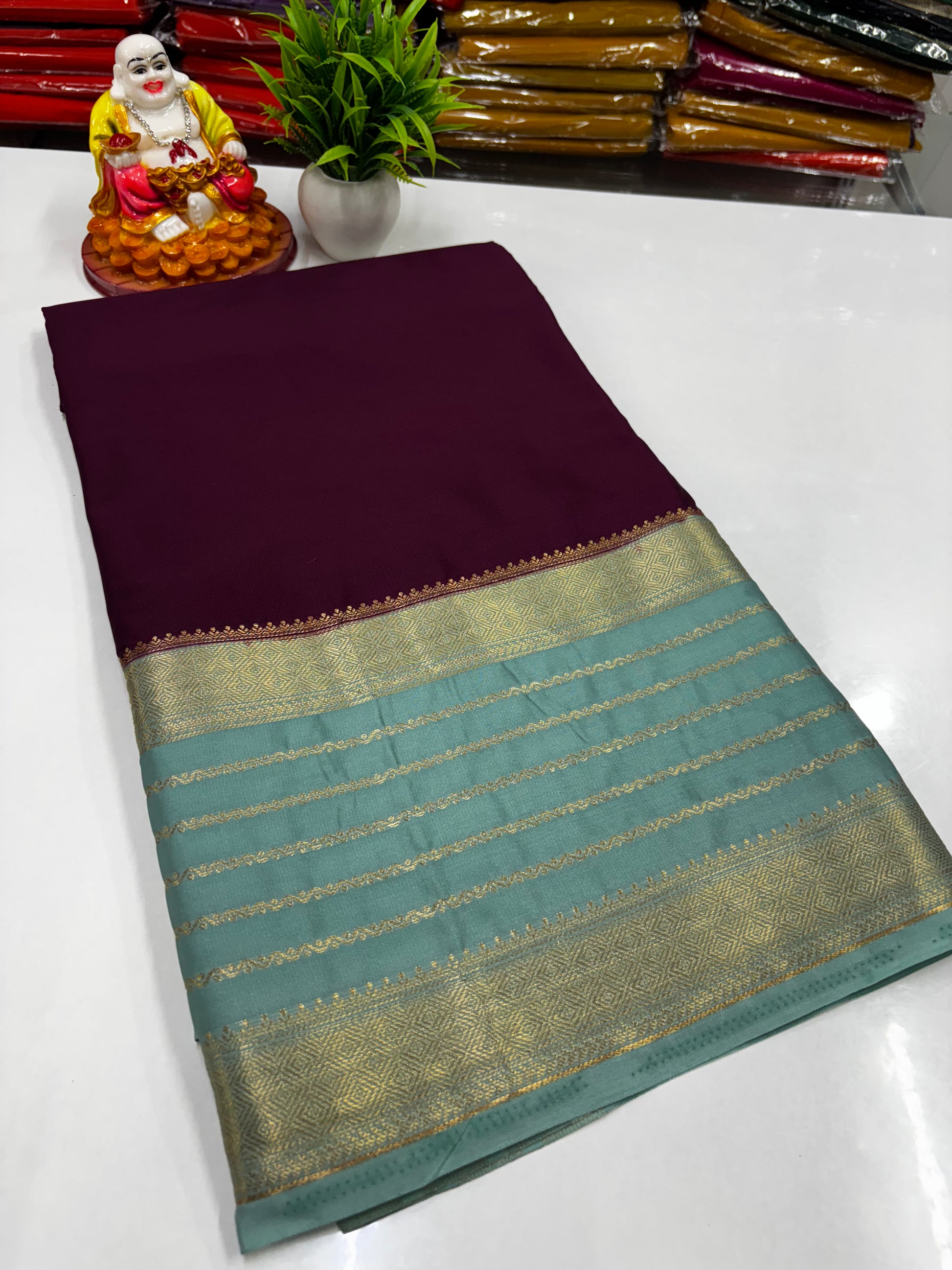 Elevate your ethnic wardrobe with this premium Mysore Crepe Silk Saree, crafted for timeless elegance and everyday comfort. Made from the finest crepe silk, this saree drapes gracefully and features a beautifully designed border that adds a touch of richness and sophistication to your look.