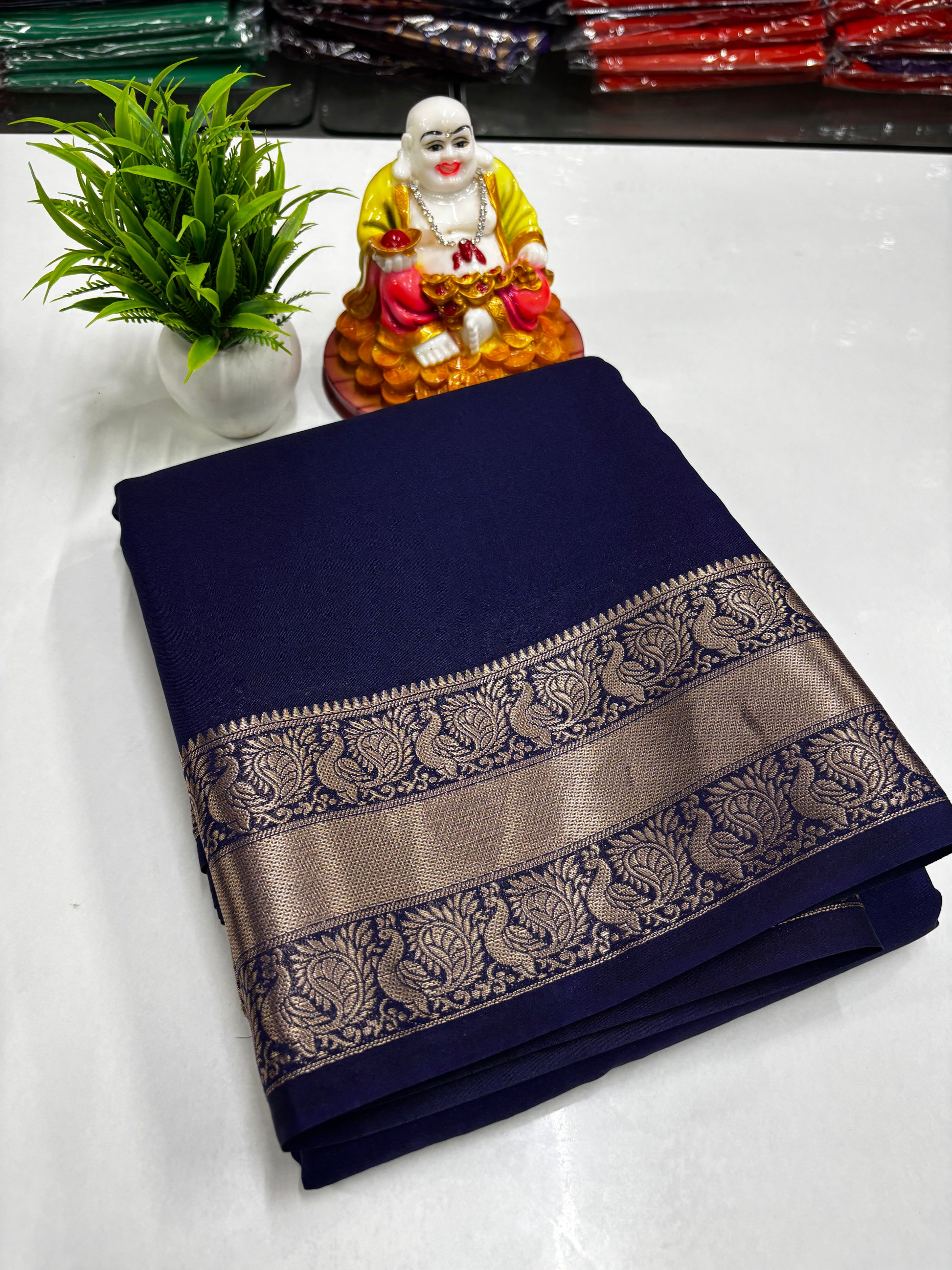 Mysore Crepe Silk Saree with Beautiful Peacock Border