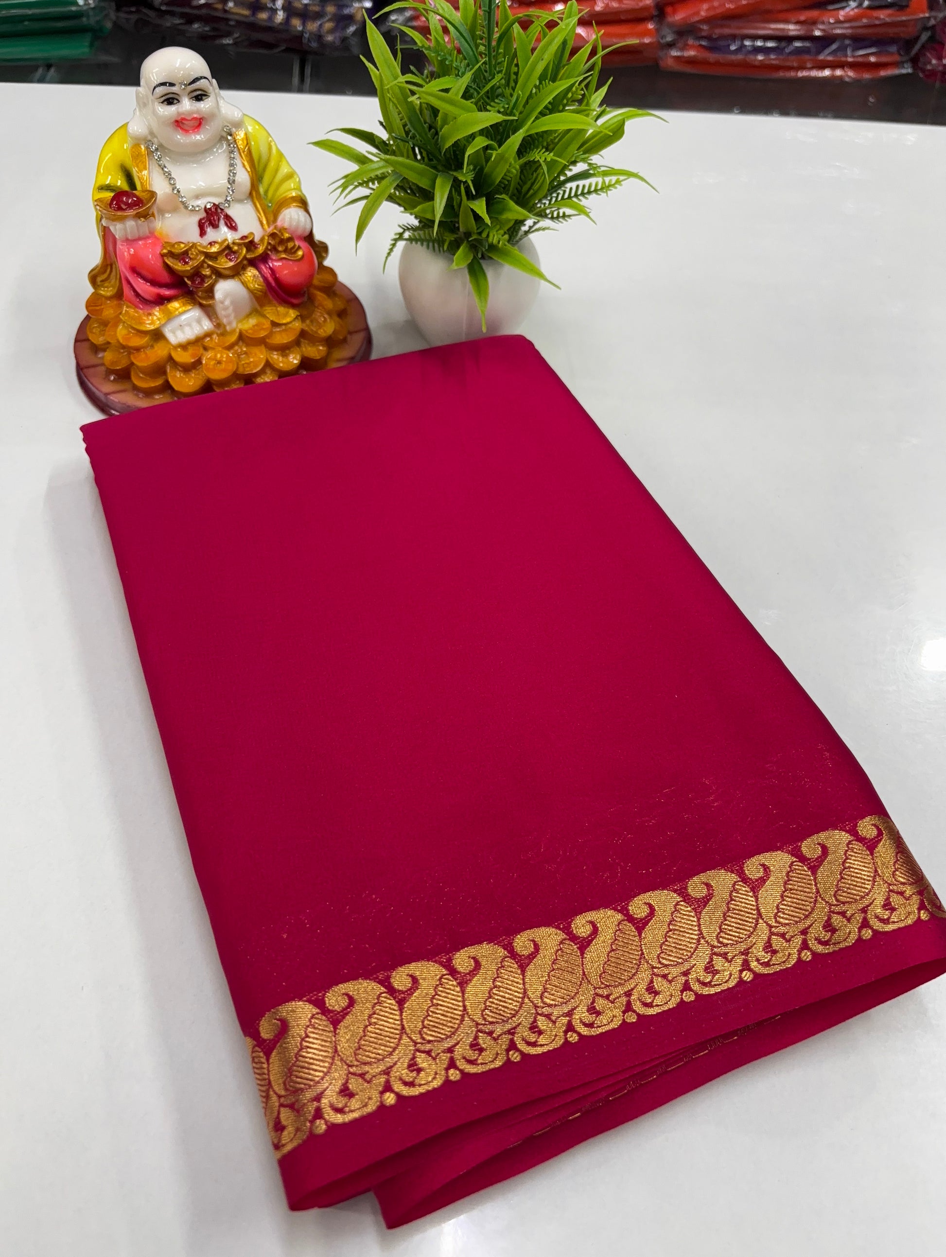 Mysore Crepe Silk Saree with Beautiful Small Mango Border