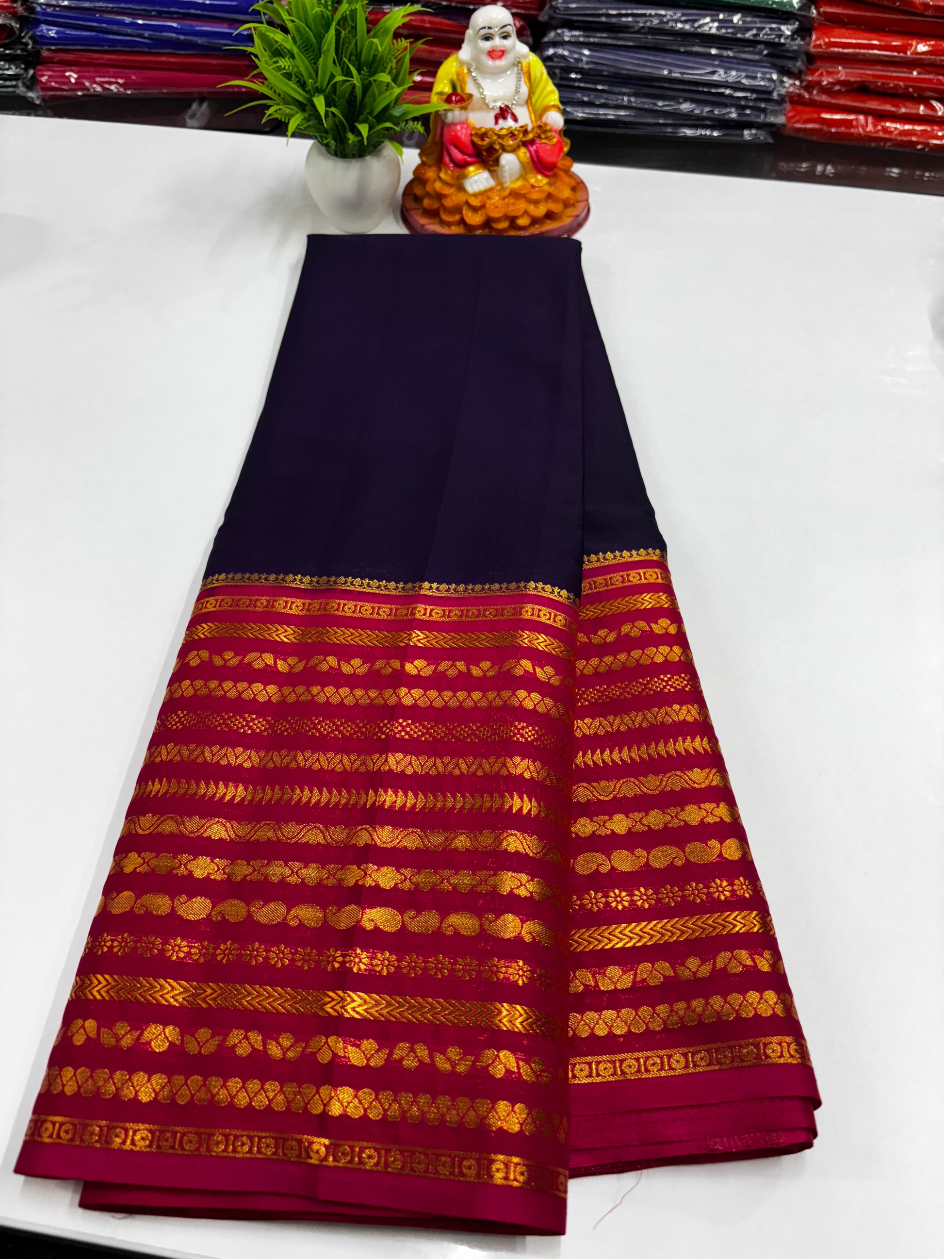 Mysore Crepe Silk Saree with Chit Pallu & Contrast Border