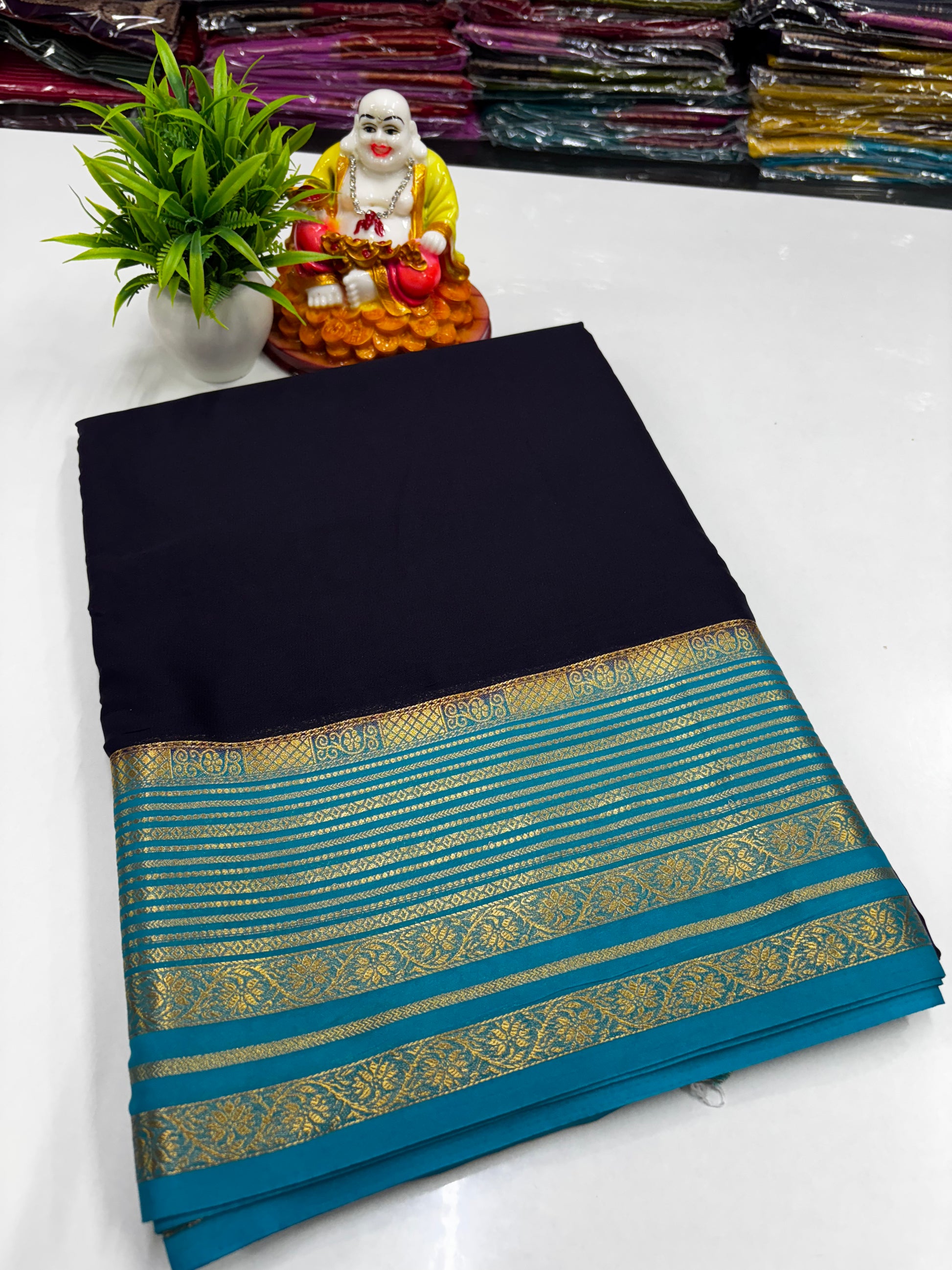 Mysore Crepe Silk Saree with Contrast Border & Rich Pallu