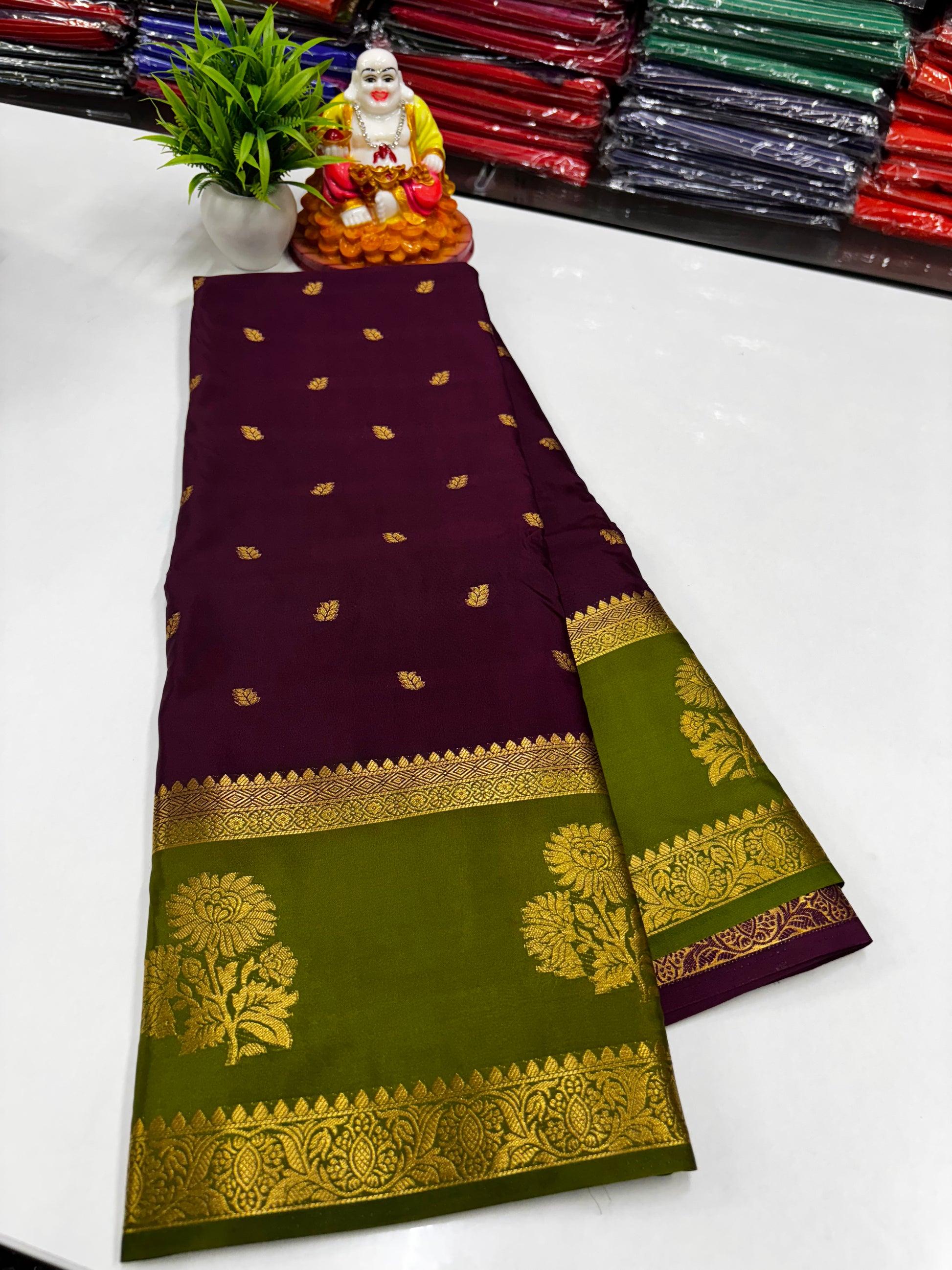 Mysore Crepe Silk Saree with Elegant Leaf Buttas