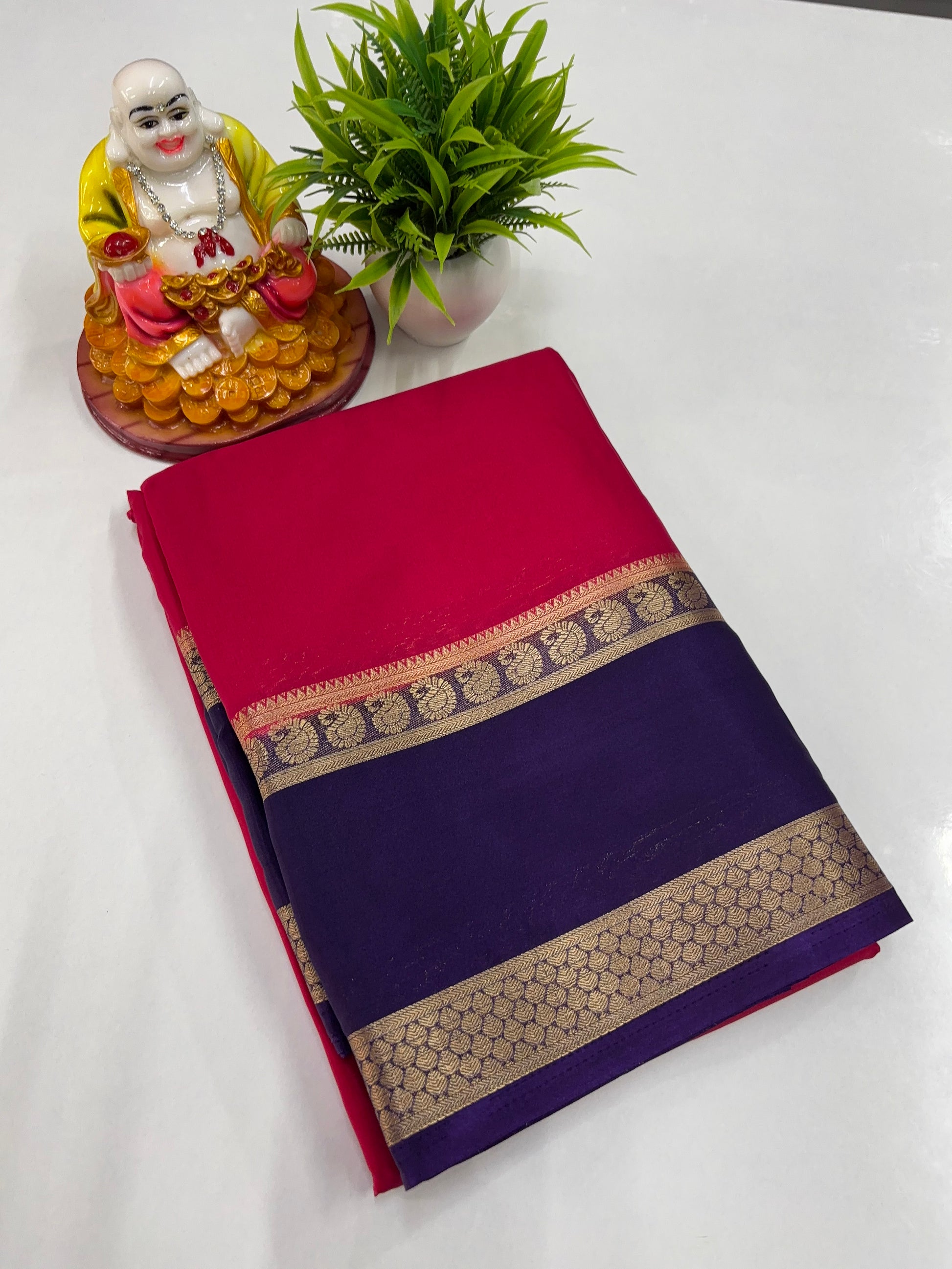 Mysore Crepe Silk Saree with Mango Bentex Border – By Padmavathi Silks & Sarees