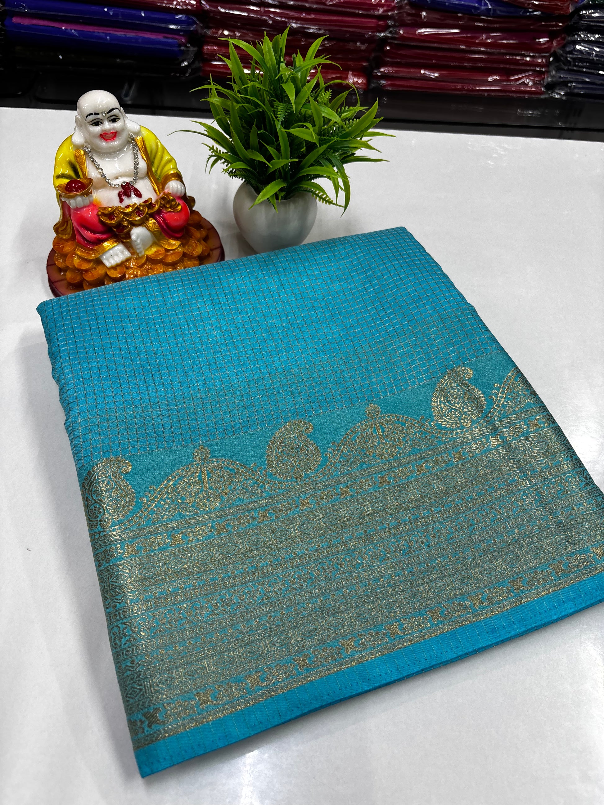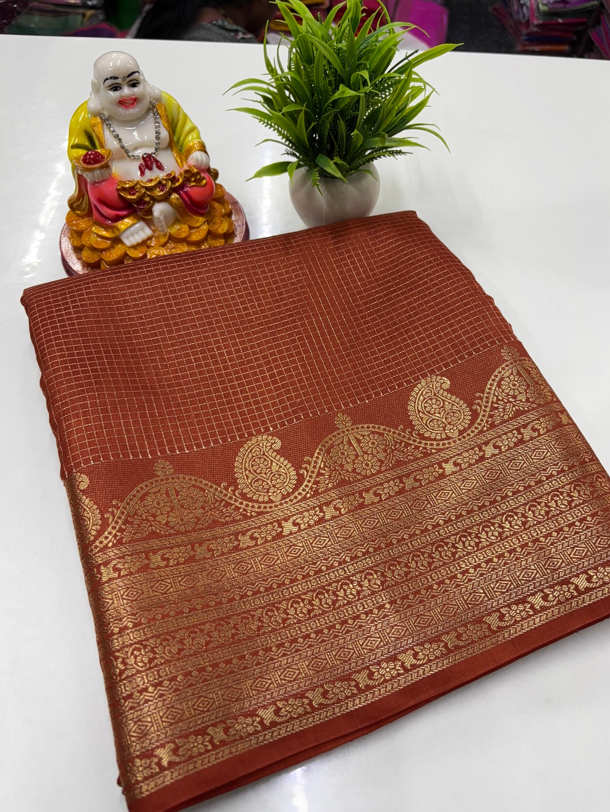 Experience timeless elegance with this premium Mysore Crepe Silk saree, crafted to reflect traditional charm and everyday sophistication. The saree features a beautifully woven rich pallu that adds depth and grandeur, making it perfect for festive occasions and special gatherings.