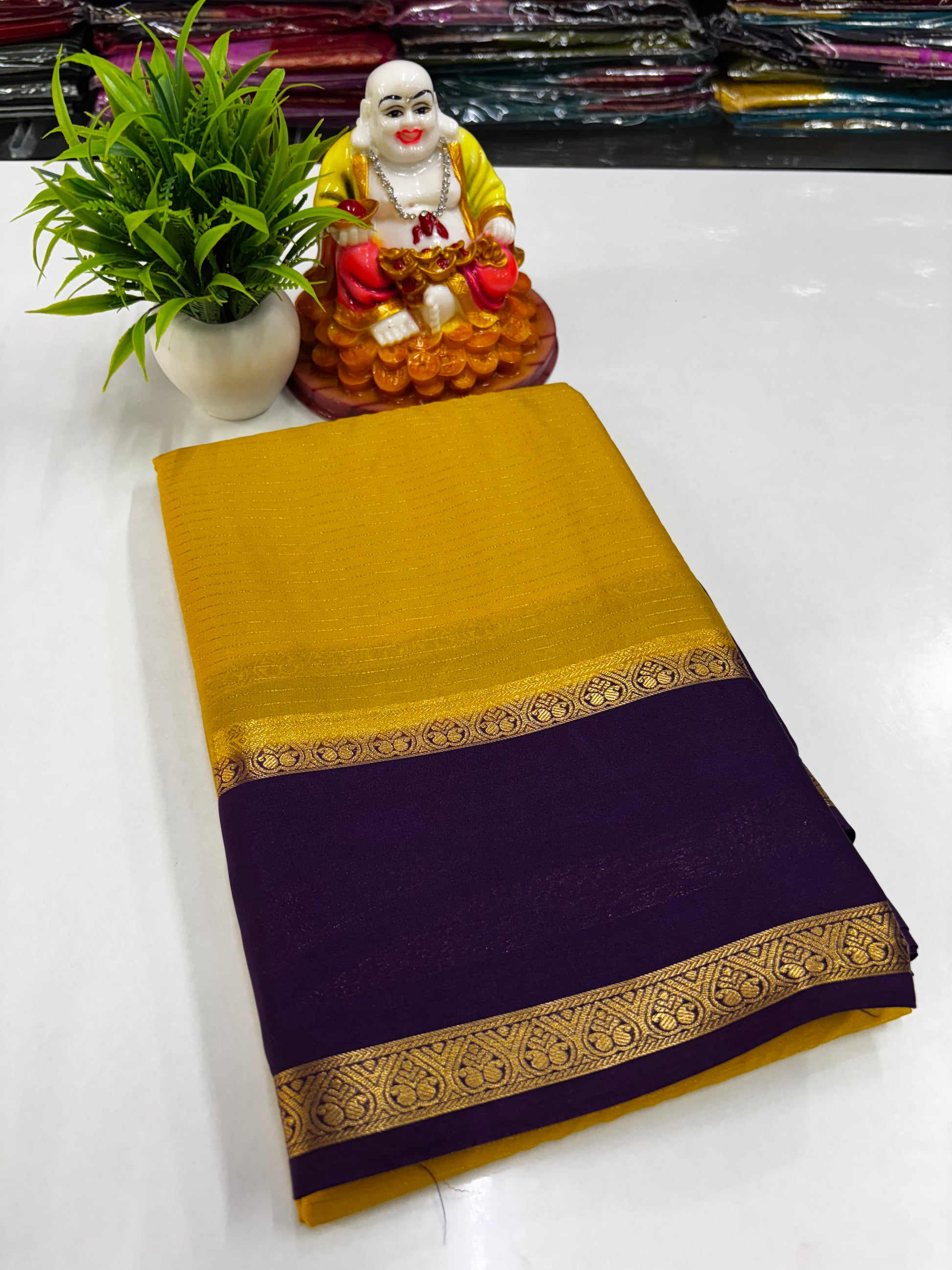 We specialize in Mysore Silk Semi Crepe Sarees along with Georgette, Dola Silk, and designer blouse collections in Raw Silk, Velvet, and Satin.