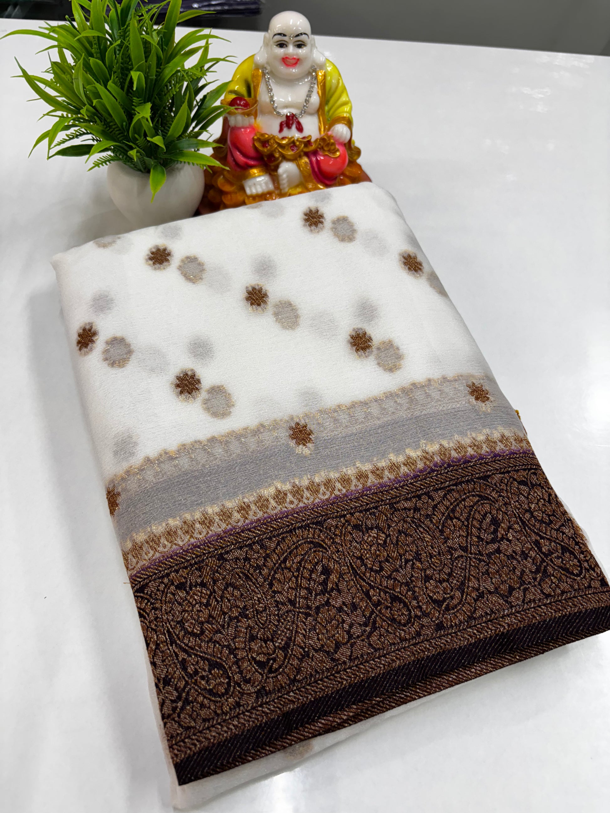 Premium Chiffon Saree with Beautiful Buttas & Rich Pallu