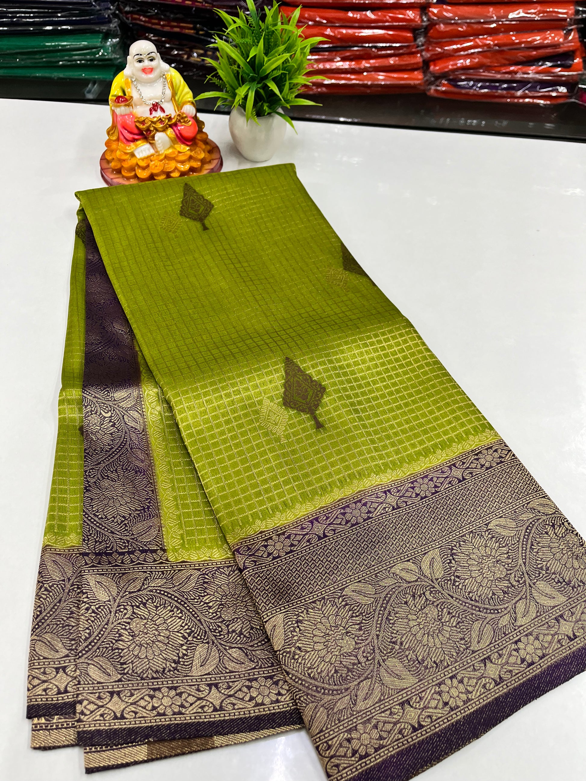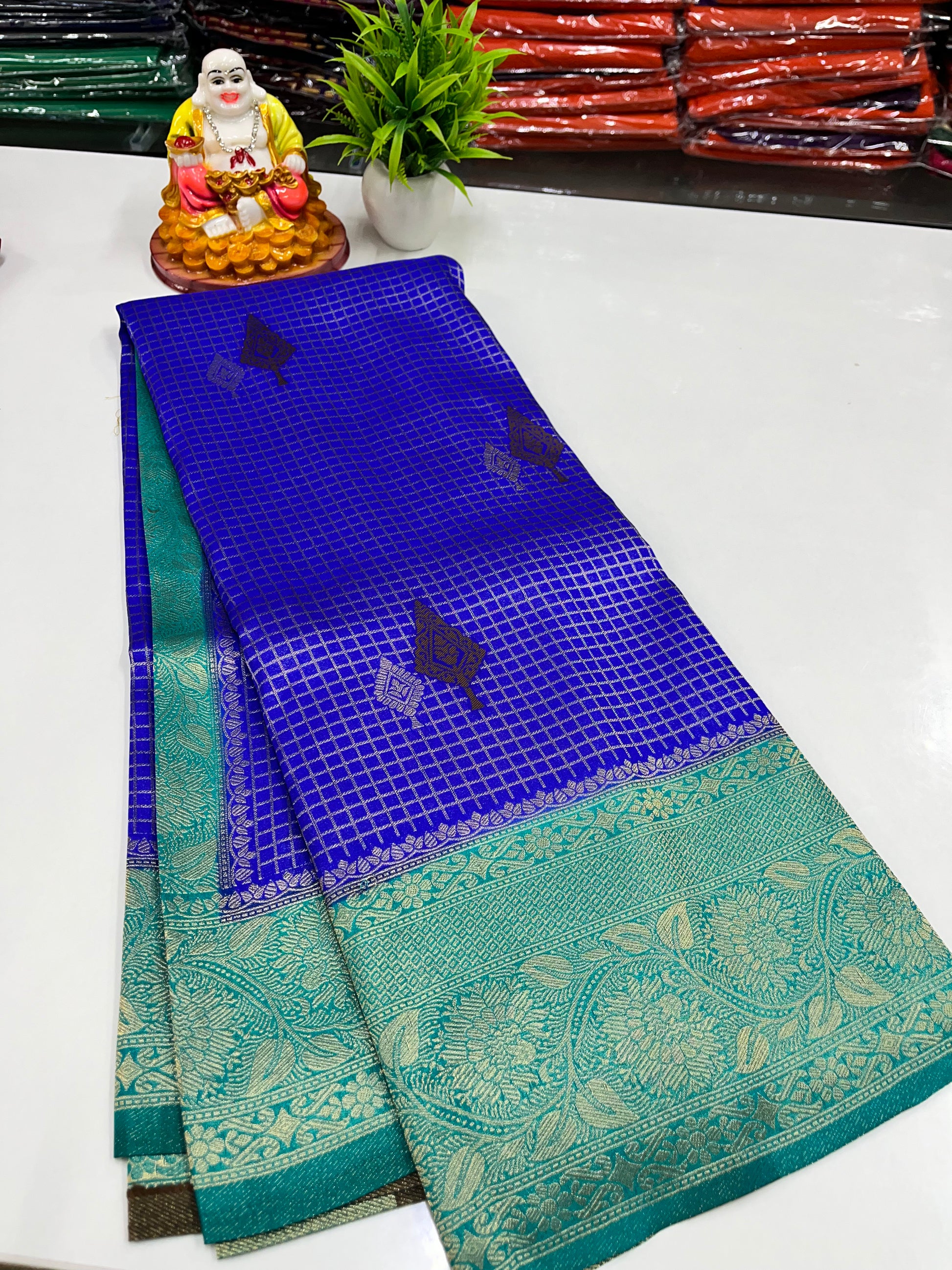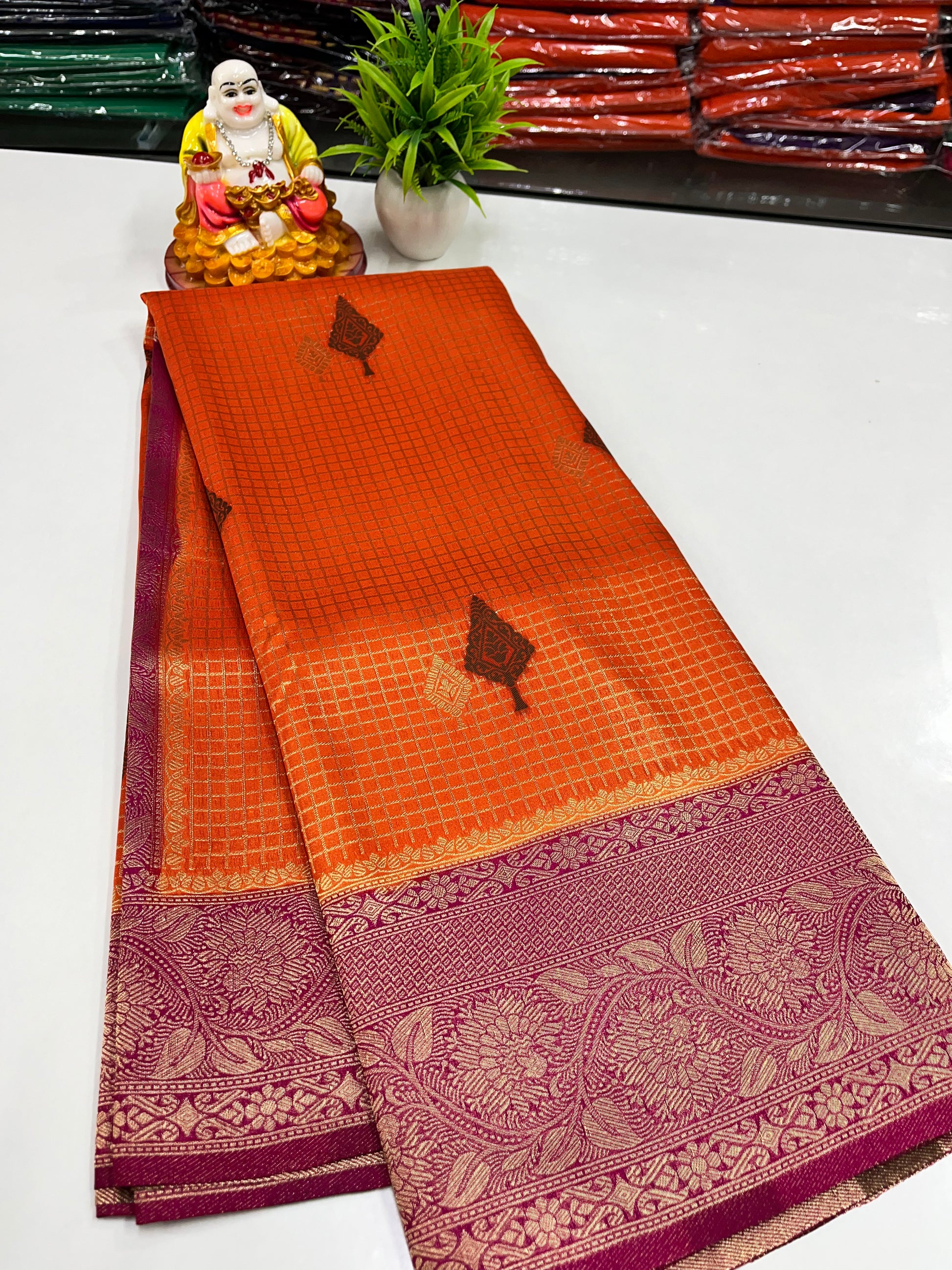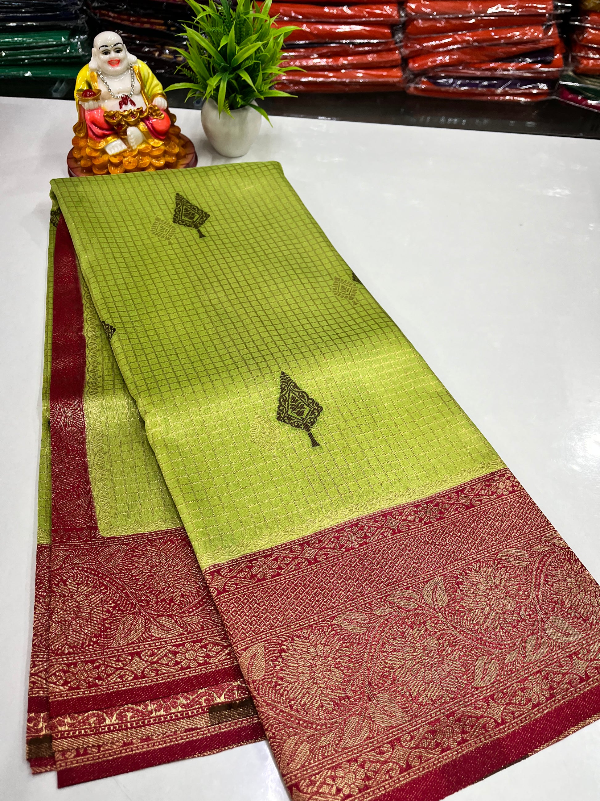 Elevate your ethnic wardrobe with this premium georgette saree featuring a graceful checks (chex) pattern beautifully adorned with delicate buttas. The lightweight georgette fabric offers a soft flow and comfortable drape, making it perfect for both festive occasions and elegant day wear. Designed with a timeless appeal and refined detailing, this saree blends tradition with modern charm.