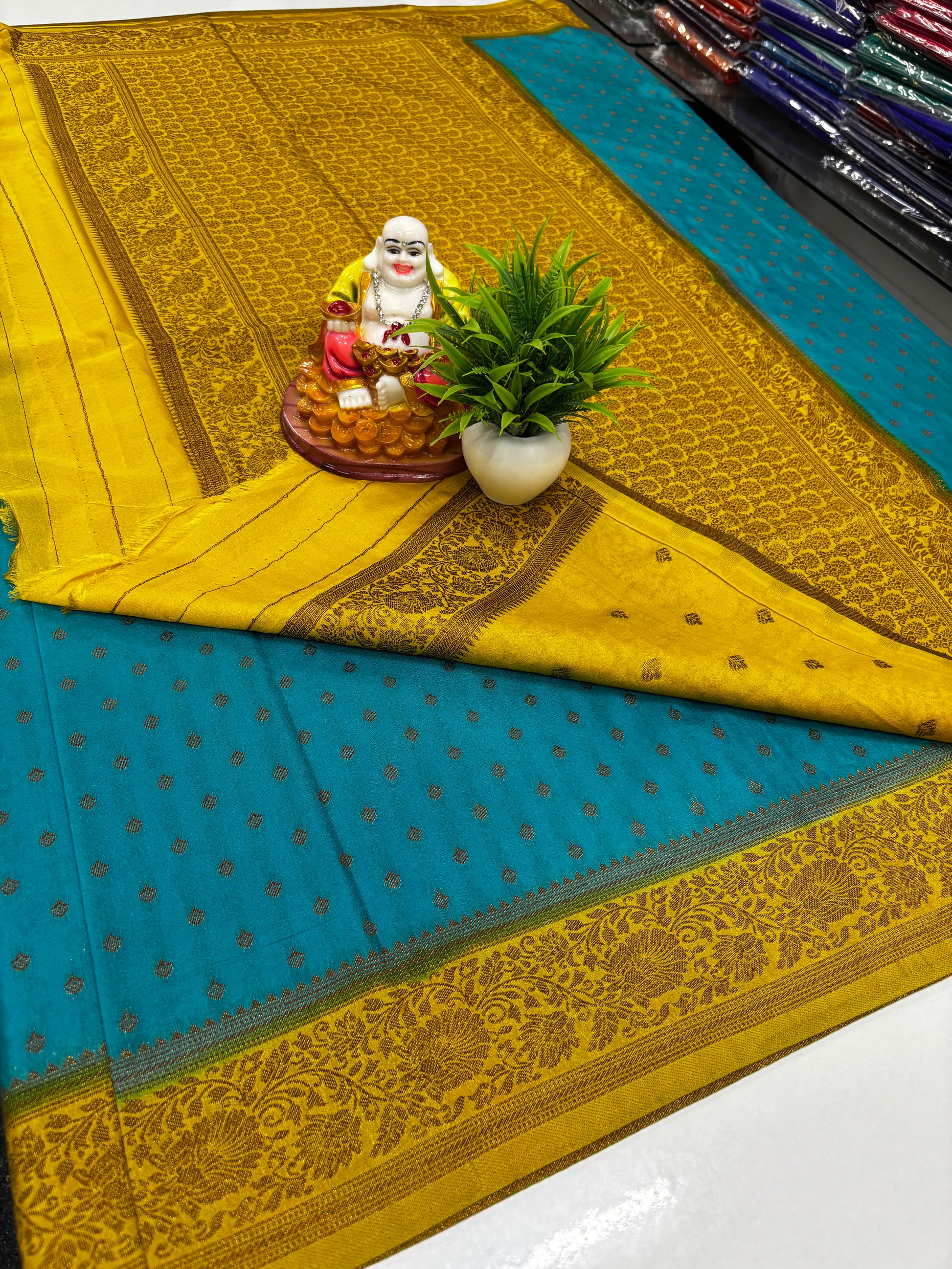 We specialize in Mysore Silk Semi Crepe Sarees along with Georgette, Dola Silk, and designer blouse collections in Raw Silk, Velvet, and Satin.