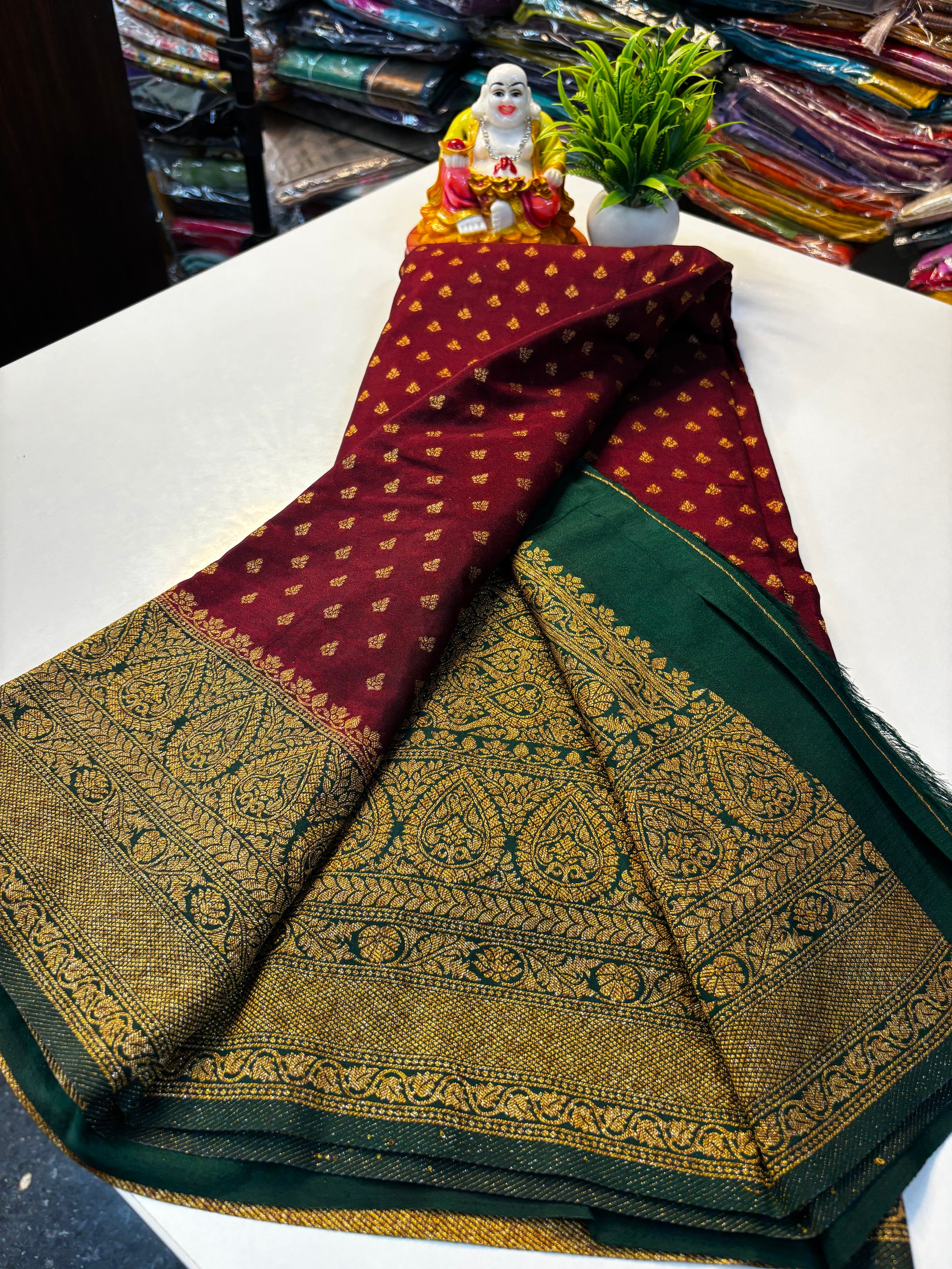 We specialize in Mysore Silk Semi Crepe Sarees along with Georgette, Dola Silk, and designer blouse collections in Raw Silk, Velvet, and Satin.