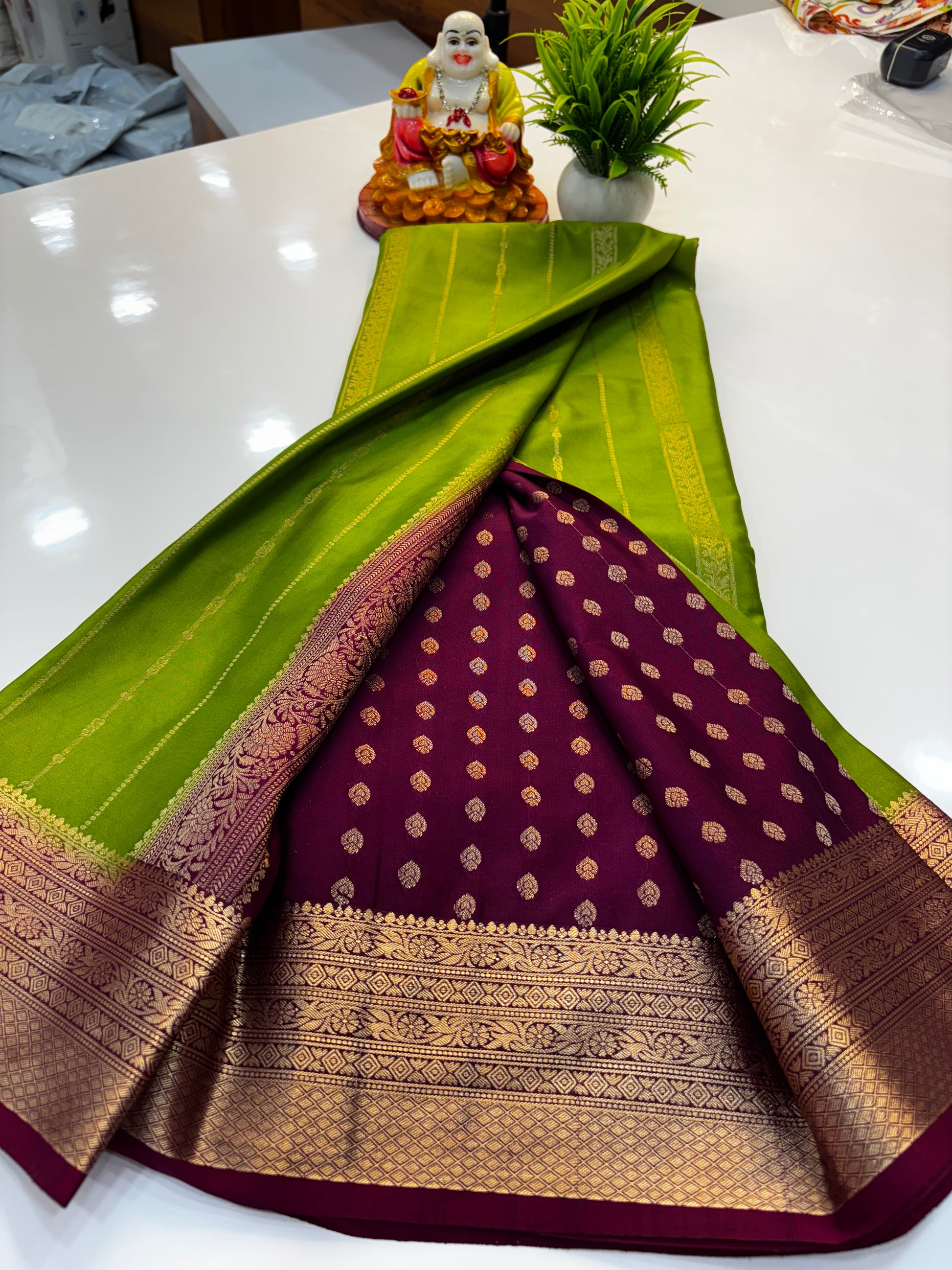 premium mysore crape silk with rich pallu and butta blouse