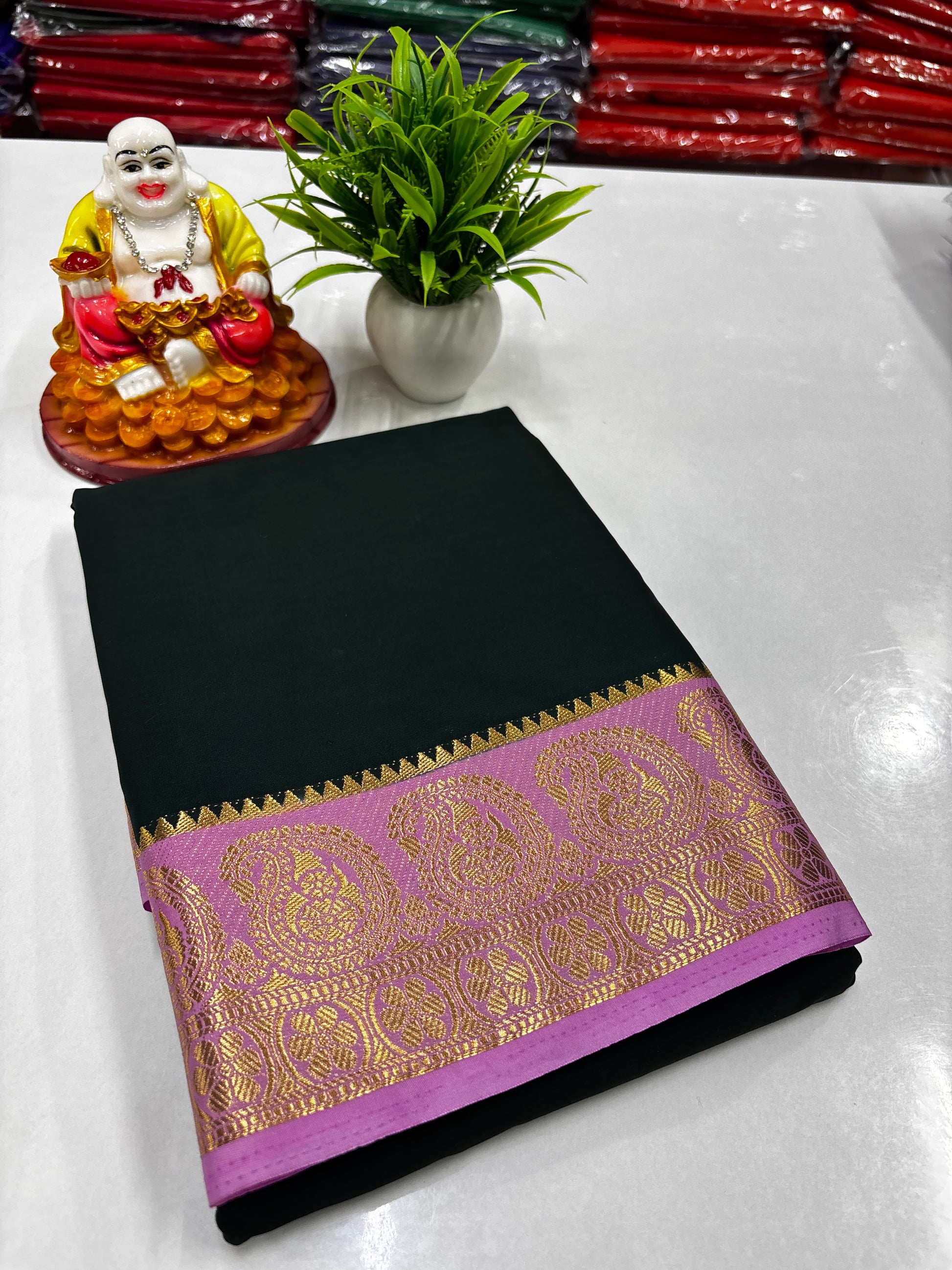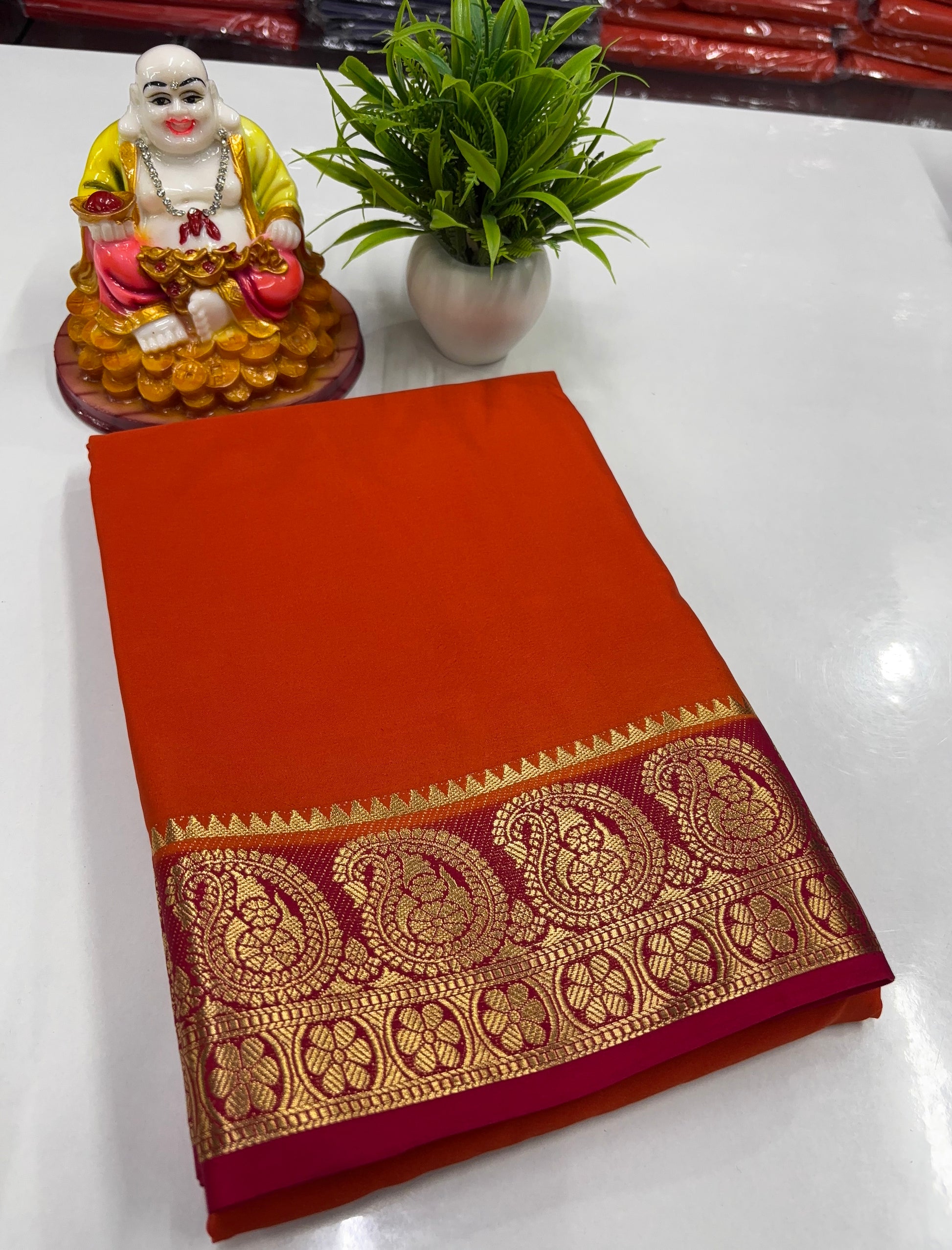 Premium Mysore Crepe Silk Saree with Beautiful Mango Border