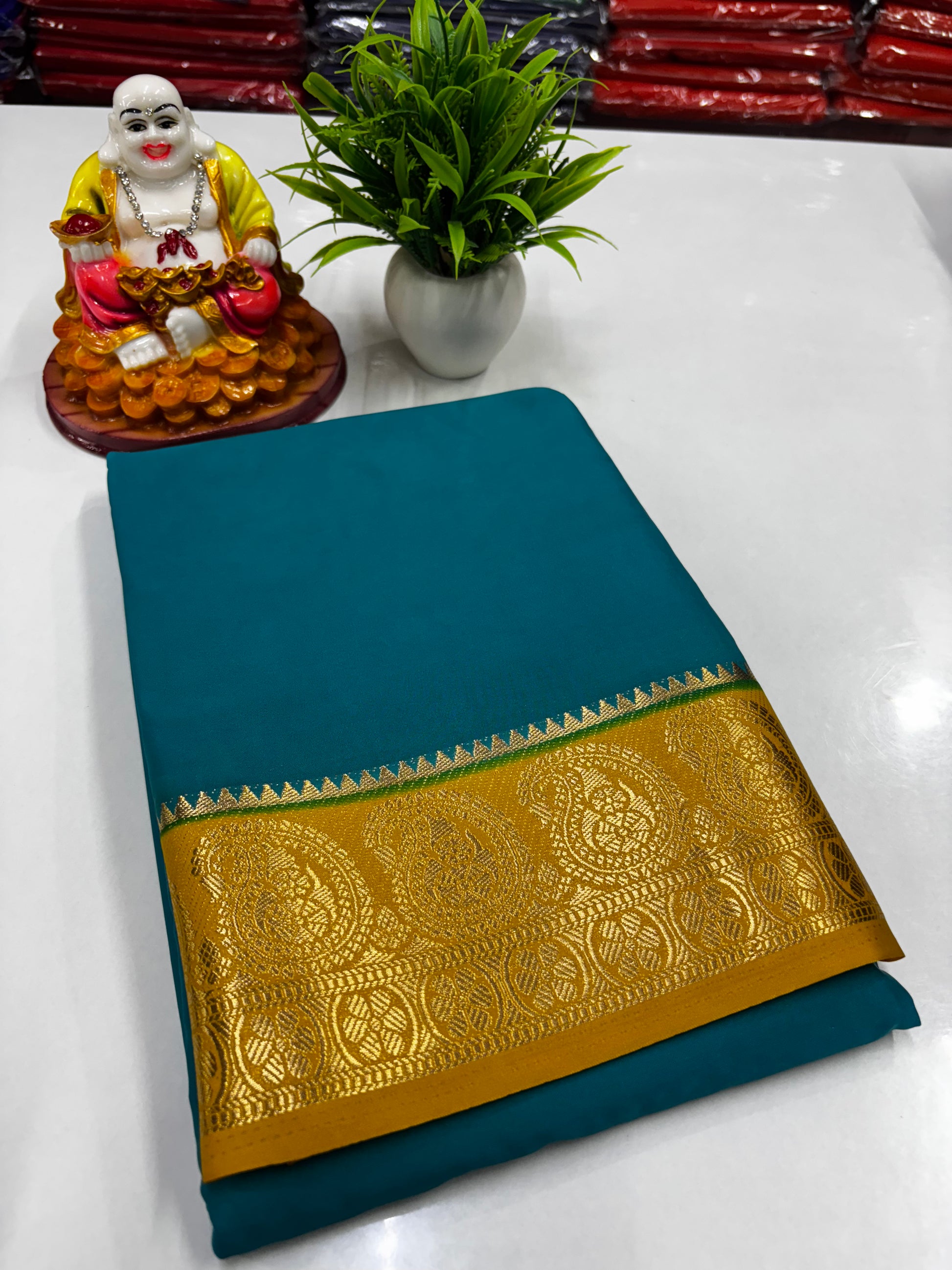We recommend dry cleaning for Mysore Silk, Dola Silk, and delicate fabrics to maintain their shine and longevity. Avoid direct sunlight while drying and store in a cool, dry place.