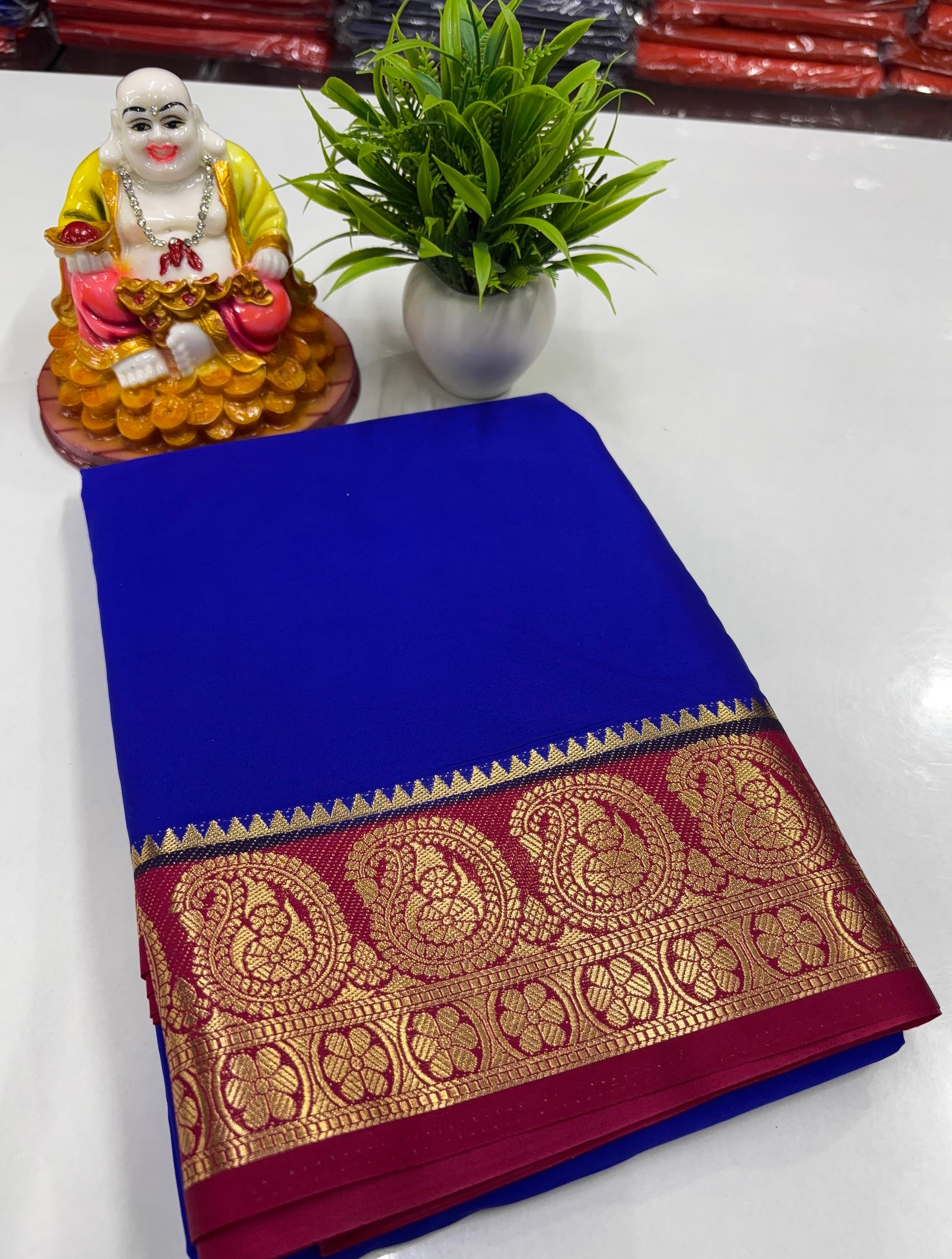 We specialize in Mysore Silk Semi Crepe Sarees along with Georgette, Dola Silk, and designer blouse collections in Raw Silk, Velvet, and Satin.