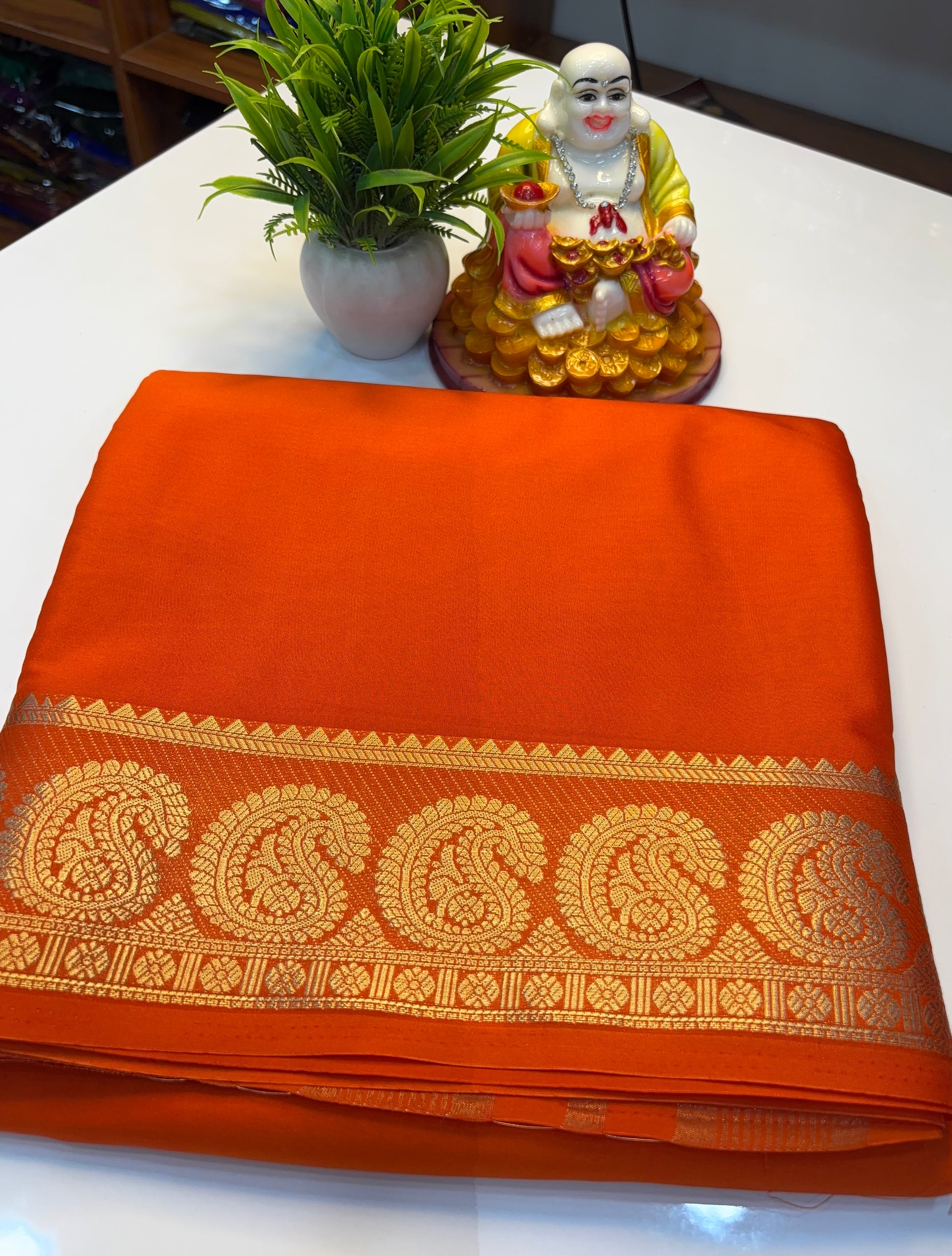 Premium Mysore Crepe Silk Saree with Beautiful Mango Border