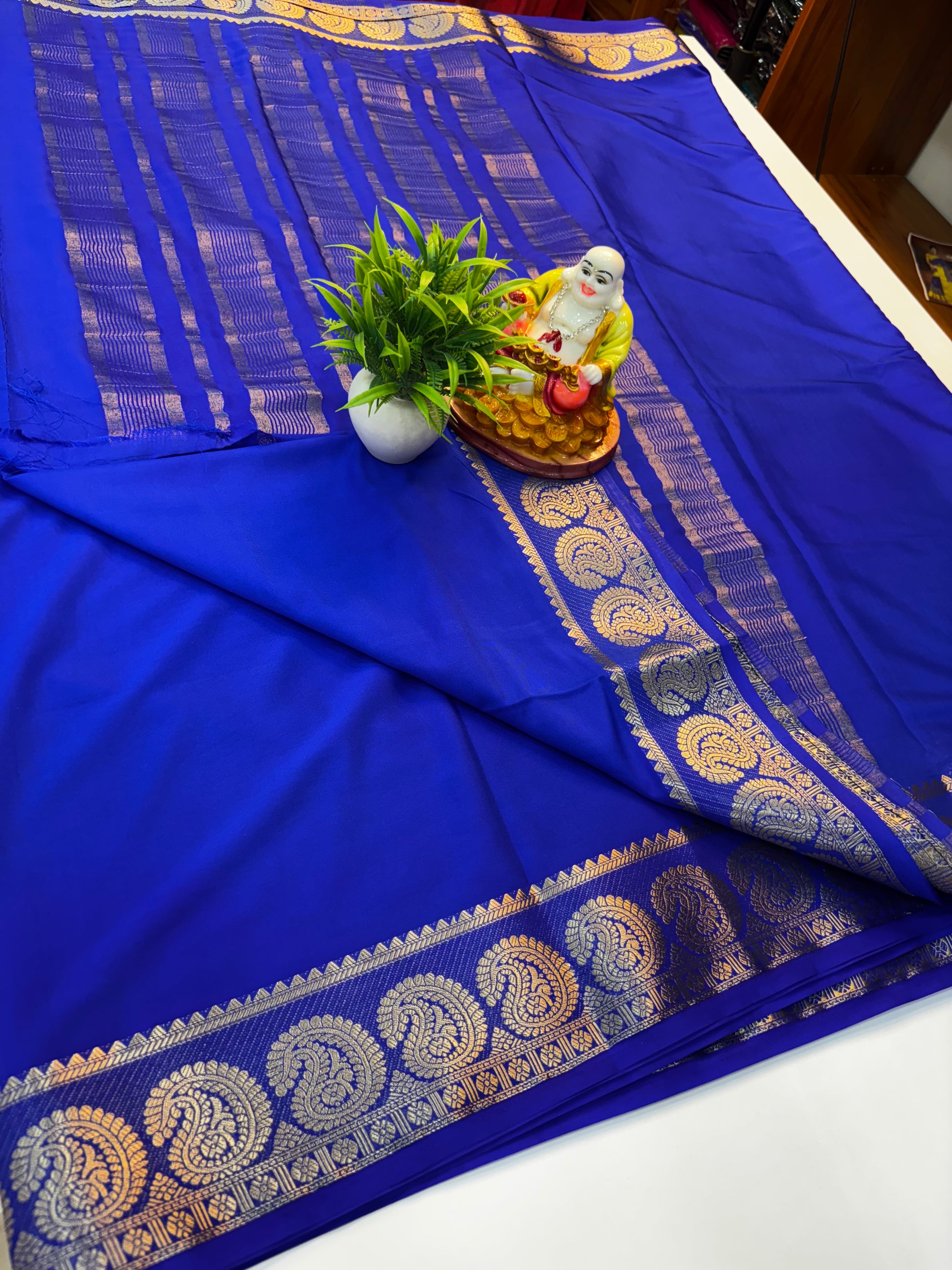 We recommend dry cleaning for Mysore Silk, Dola Silk, and delicate fabrics to maintain their shine and longevity. Avoid direct sunlight while drying and store in a cool, dry place.