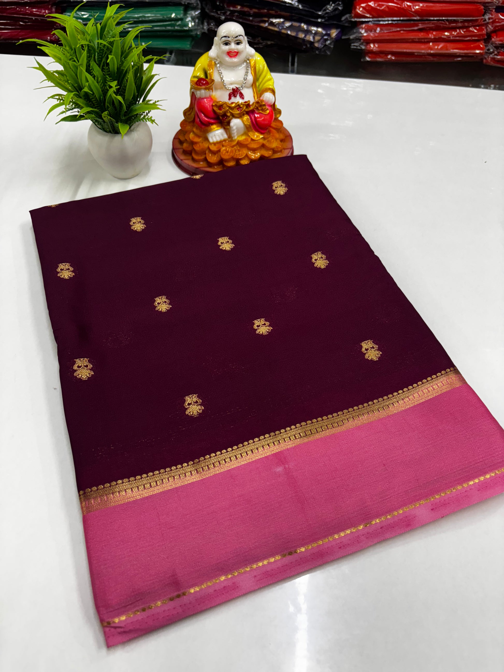 Premium Mysore Crepe Silk Saree with Buttas – Elegant Contrast Shades