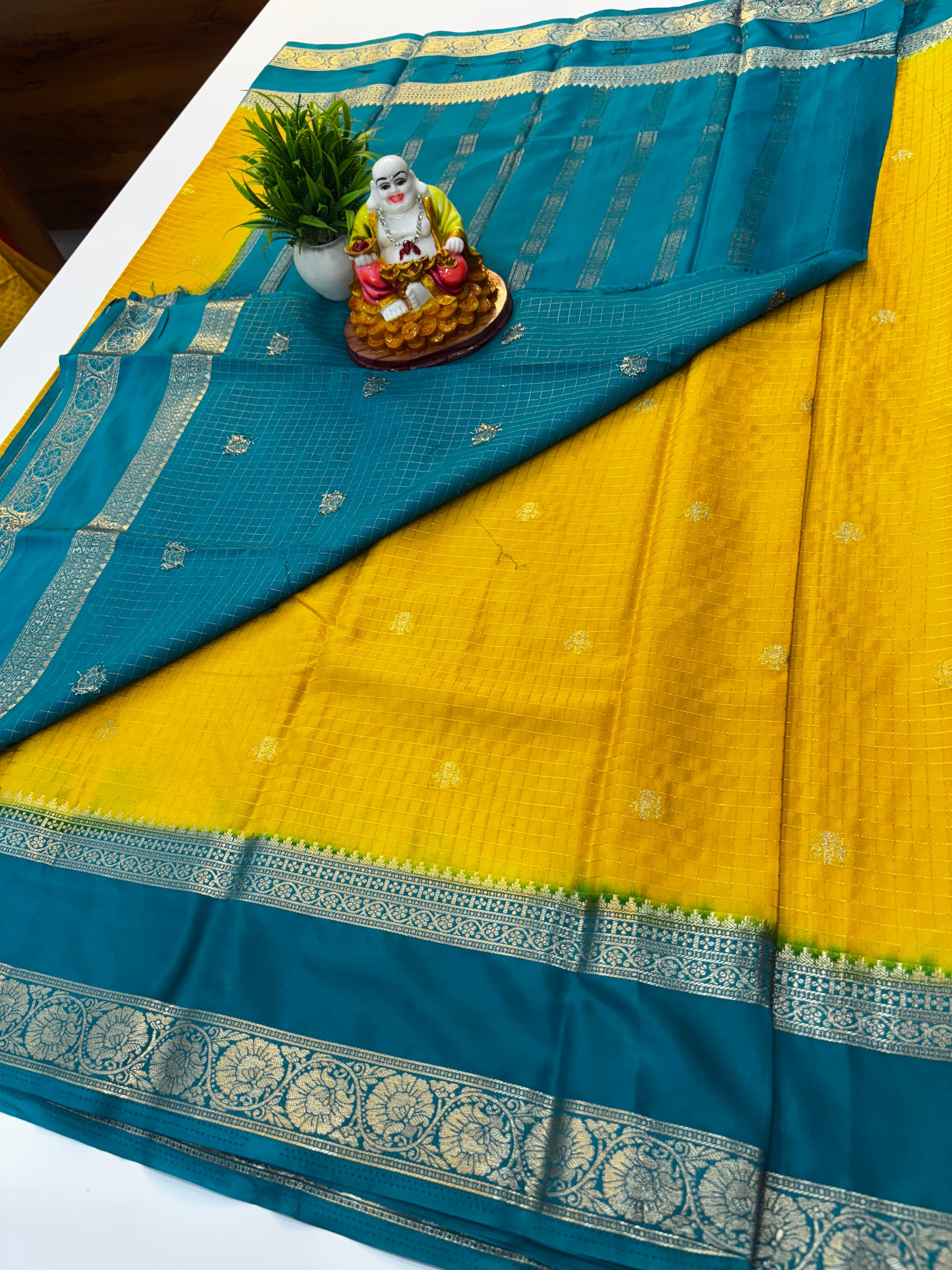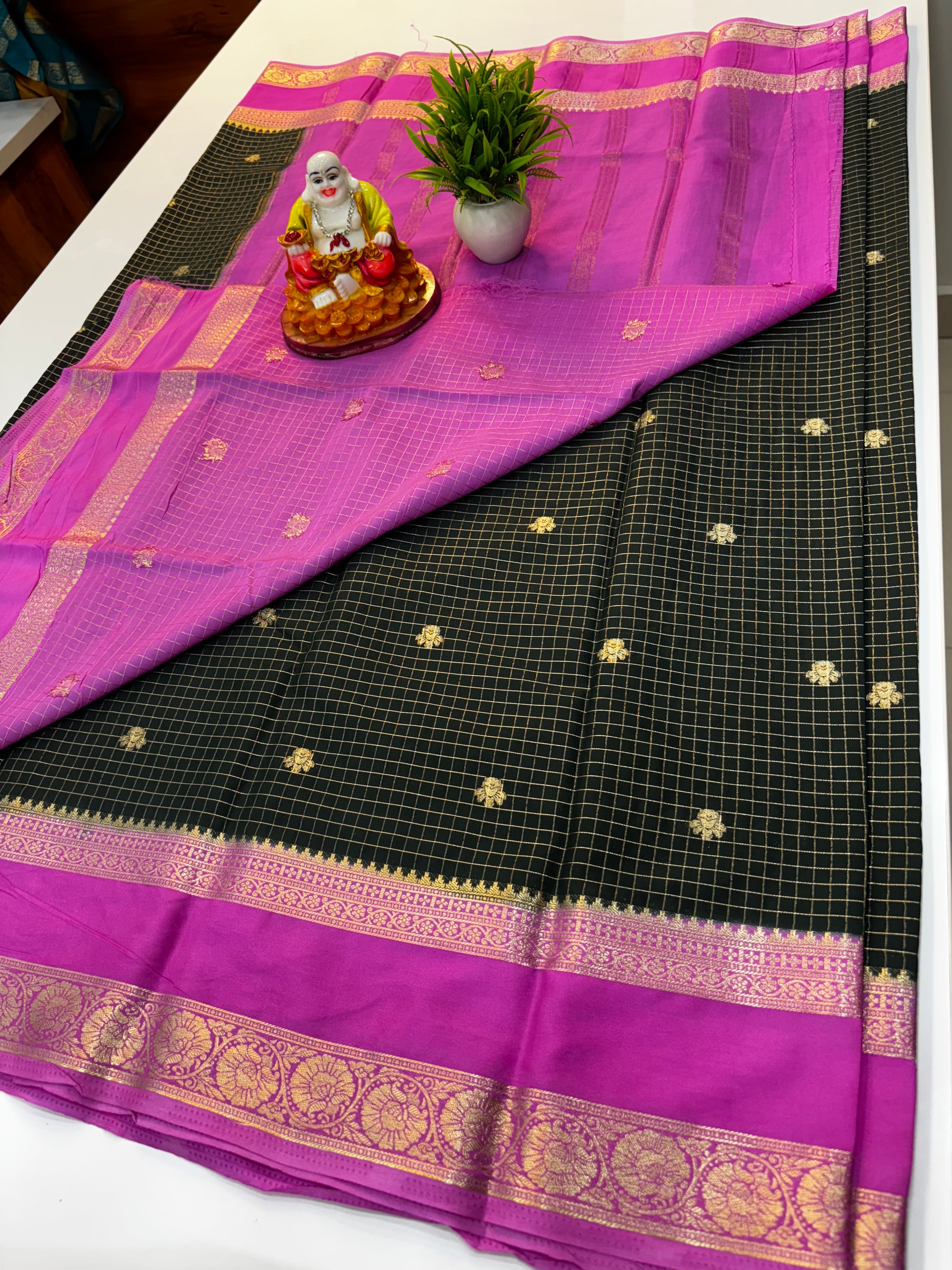 Premium Mysore Crepe Silk Saree with Chex Pattern & Buttas