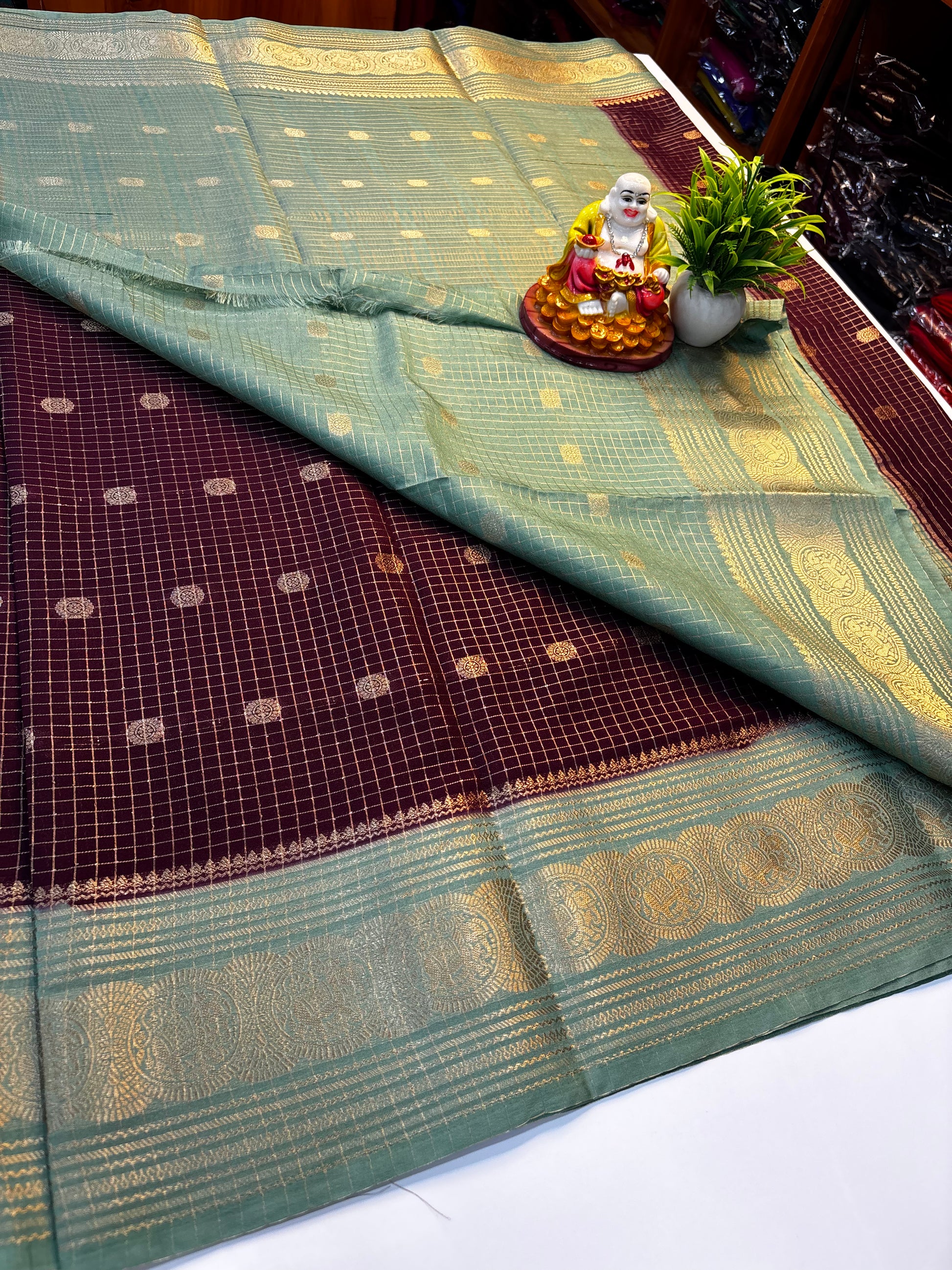 Premium Mysore Crepe Silk Saree with Elegant Checks & Buttas