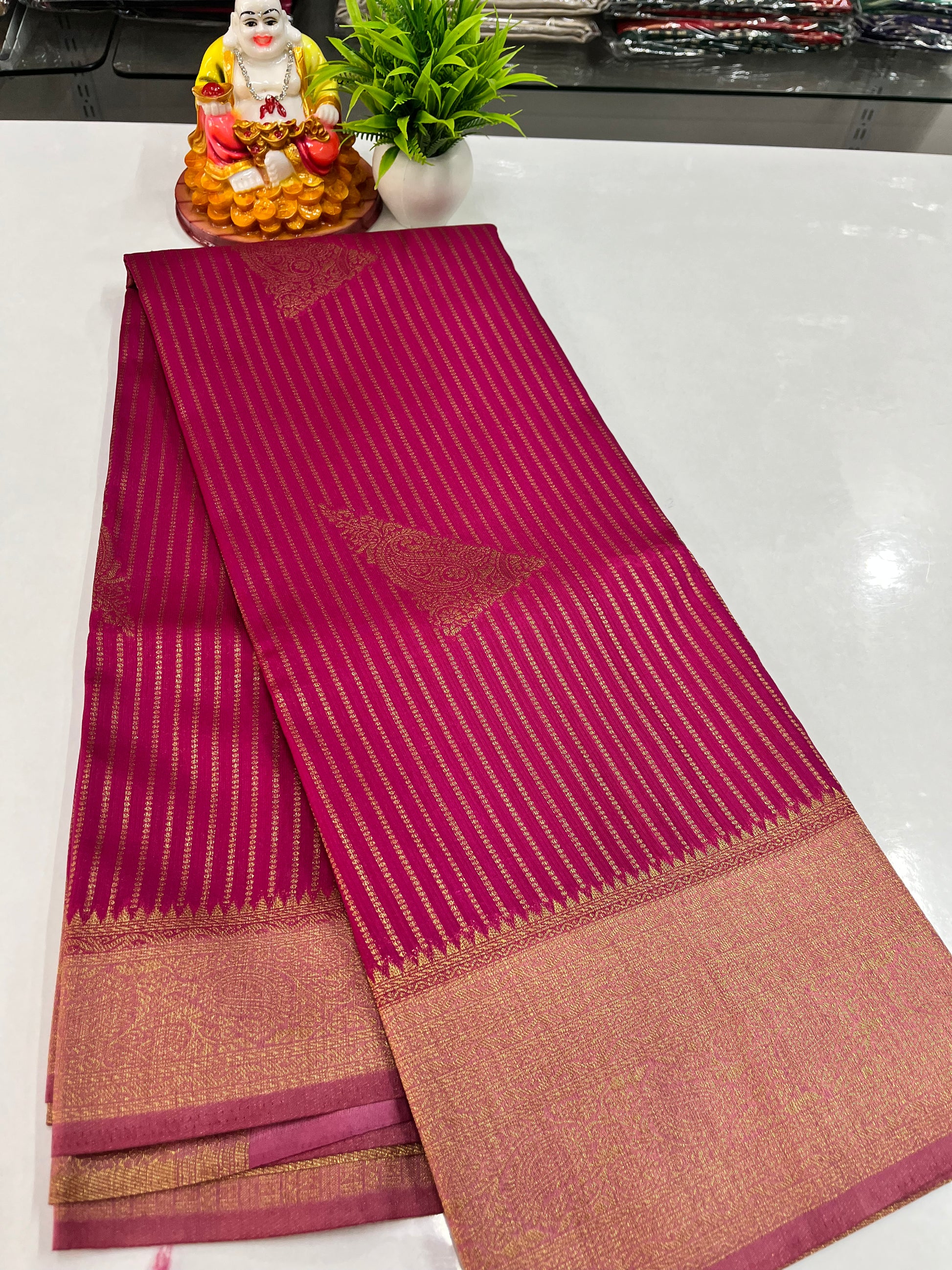 Premium Raw Silk Saree with Golden Zari Stripes – Padmavathi Silks & Sarees