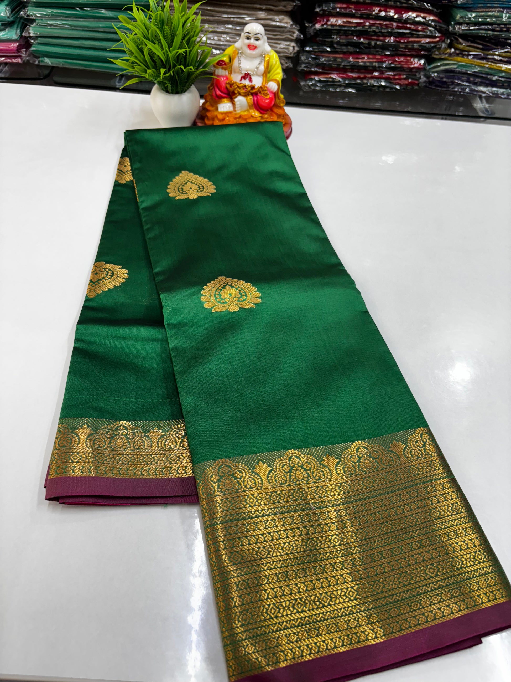 Elevate your ethnic style with this premium semi silk saree from Padmavathi Silks and Sarees. Crafted with care, this saree features rich, vibrant colors that add a touch of elegance and sophistication to any occasion. The semi silk fabric offers a luxurious drape and comfortable feel, making it perfect for festive celebrations, weddings, or special gatherings.